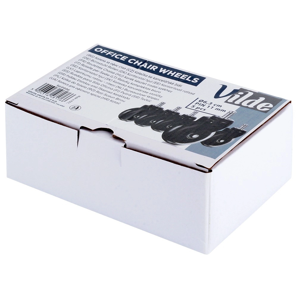 Стандартният диаметър на колелото 63 мм и щифт 11 мм осигуряват широка съвместимост с повечето офис столове (с изключение на моделите на IKEA). Монтажът е въпрос на миг – без инструменти, достатъчно е да извадите старите колелца и да поставите новите.