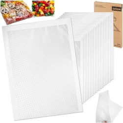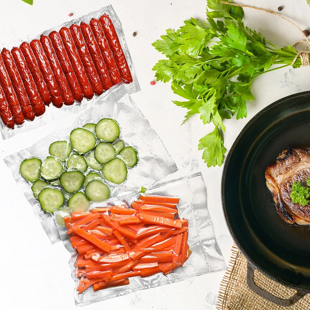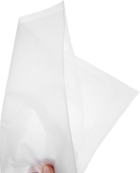 Съхранявайте храната до 5× по-дълго свежа благодарение на надеждните вакуумни пликове. Едната страна е гладка, другата структурирана (релефна) за бързо и равномерно извличане на въздуха и перфектно уплътнение. Прозрачният дизайн улеснява контрола на съдържанието и организацията на запасите в килера и фризера.