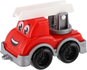 Комплектът съдържа три цветни колички – пожарна кола, лек автомобил и ван, всички с мило личице и безопасни за деца.