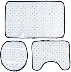 Правоъгълна постелка за вана/душ, U-постелка за тоалетната и калъф за капака на тоалетната с ластици за стабилно закрепване.