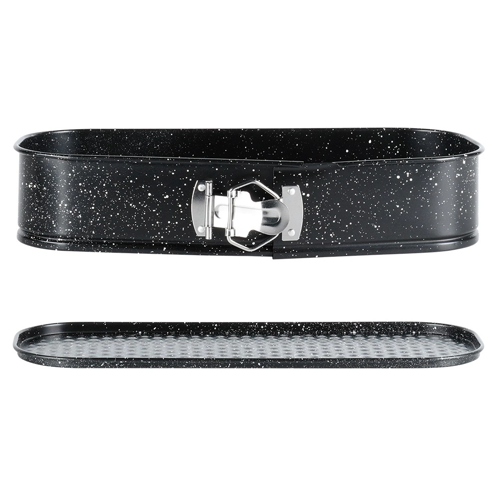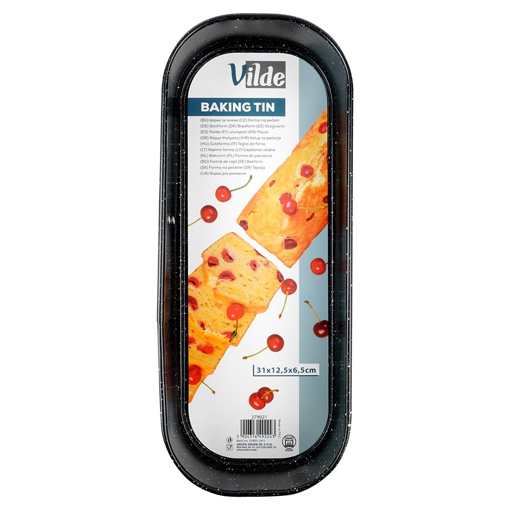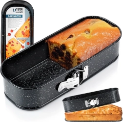 Разглобяемата правоъгълна форма е идеална за домашен хляб, кексове, бабки, пастети и втасали теста. Корпусът от висококачествена въглеродна стомана с гранитно незалепващо покритие предотвратява загарянето дори при минимално количество мазнина и осигурява равномерно изпичане.
