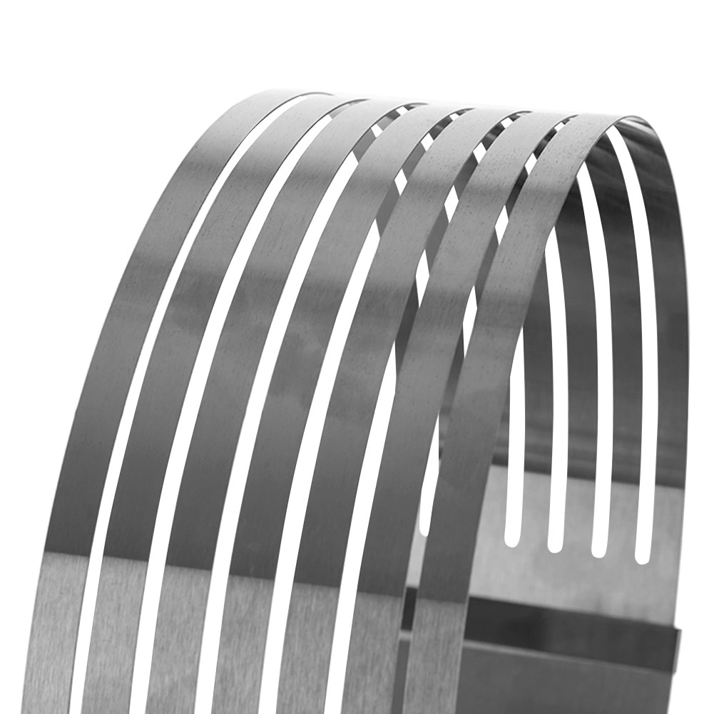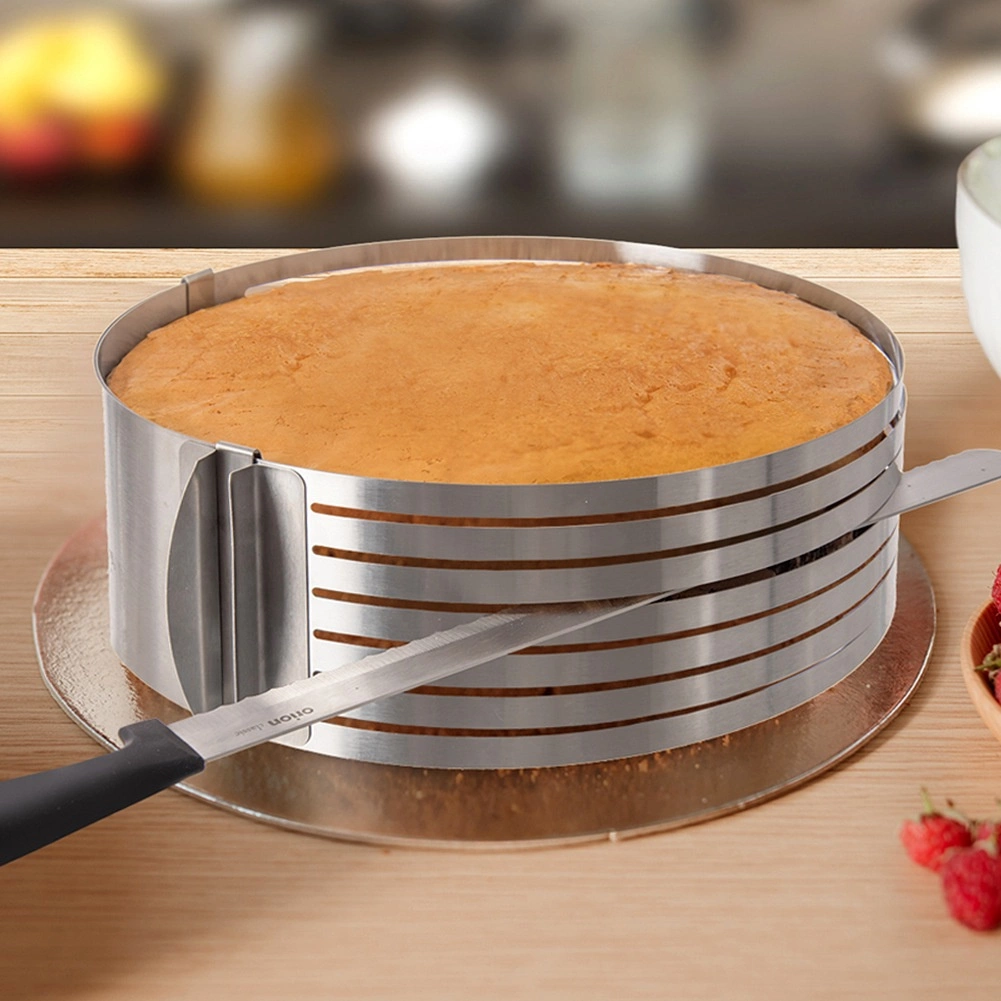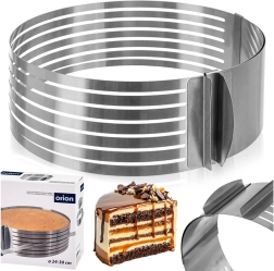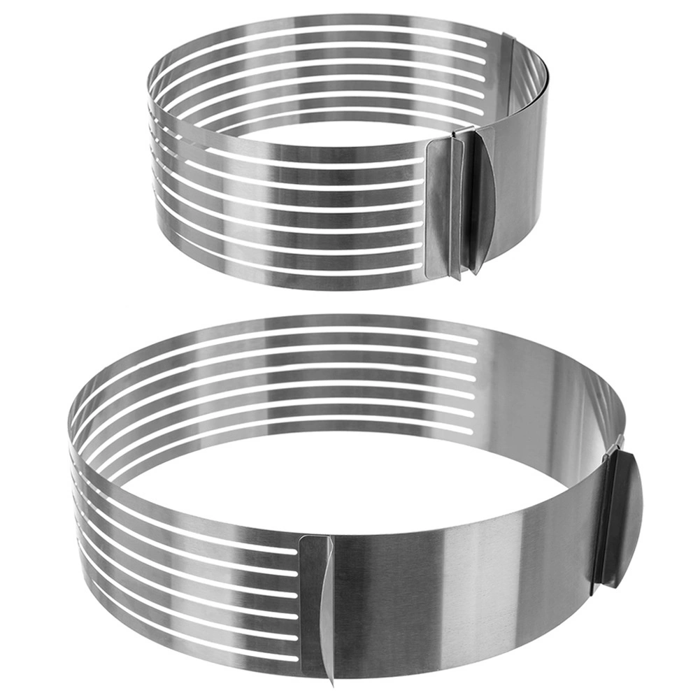 Неръждаемият ринг за рязане на блат е идеалният помощник за любителите на печивата, които искат да постигнат перфектно равни слоеве без сложно измерване. Регулируемата скоба позволява точно да настроите диаметъра от 24 до 30 cm, а водещите канали помагат да водите ножа в една равнина.