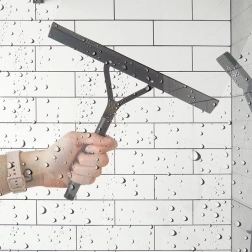 Широката лайстна и удобната дръжка гарантират ефективно отстраняване на водата от душ-врати, прозорци и огледала без усилие.