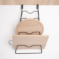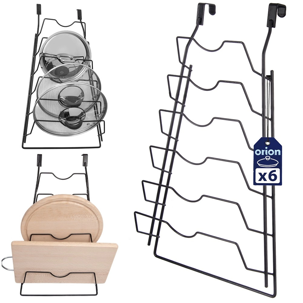 Поддържайте кухнята подредена и използвайте всеки сантиметър пространство. Този здрав държач за капаци с капацитет до 6 броя лесно се окачва на вратата на кухненски шкаф (до дебелина около 2,5 см) или се завинтва към стената. Минималистичният лофт дизайн в черно се съчетава с модерни и класически кухни.