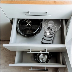 Разделените канали държат капаците и чиниите стабилно във вертикална позиция, за да имате всичко под ръка без излишен хаос.