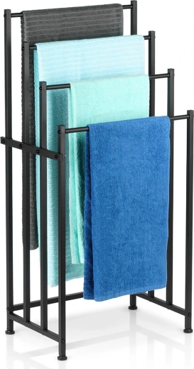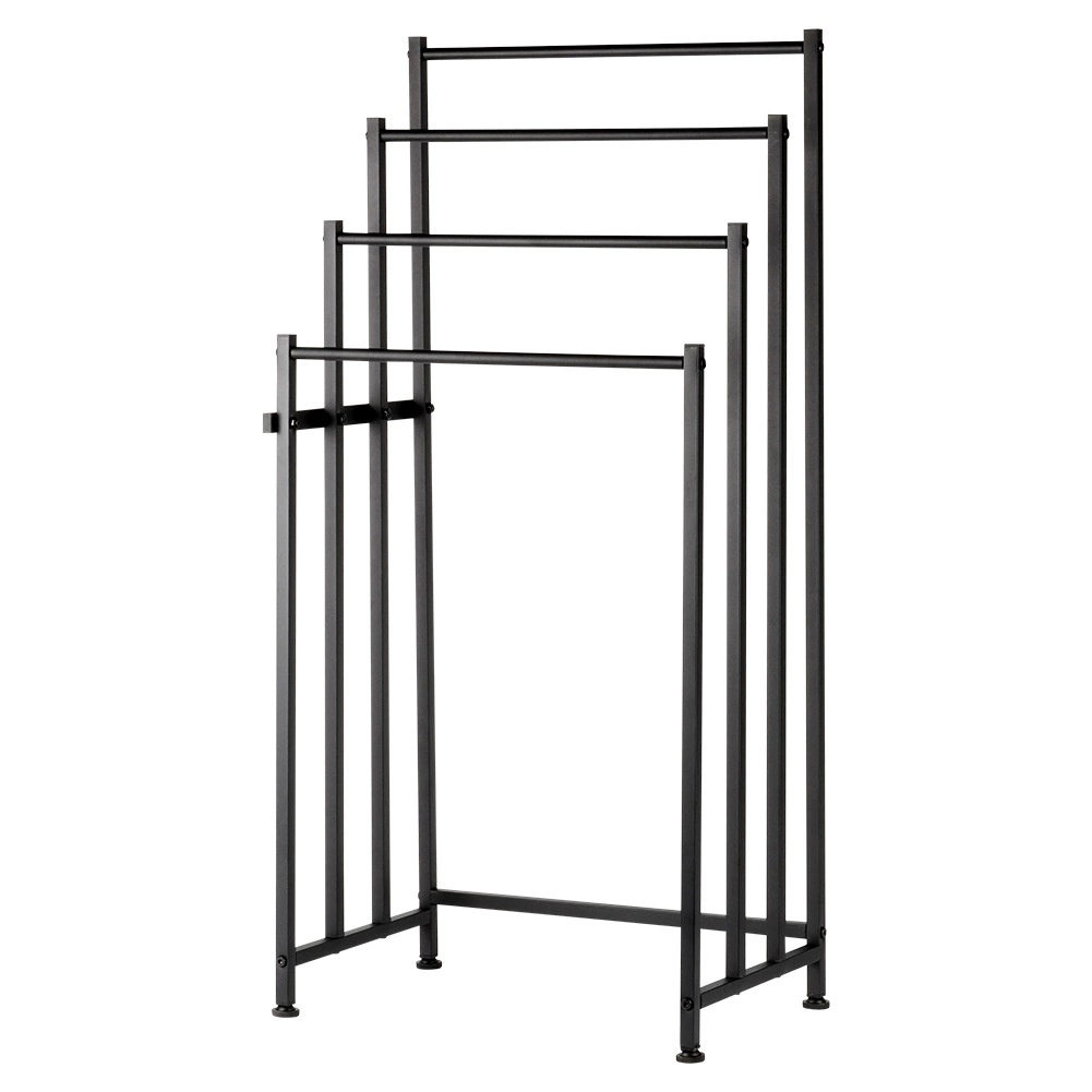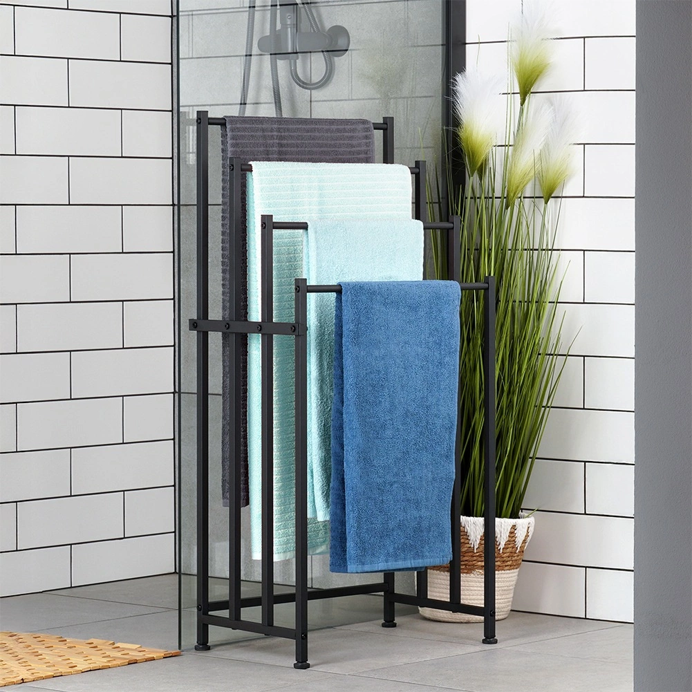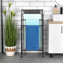 Тънката свободностояща конструкция в лофт стил спестява място и подрежда кърпите във всяка баня.