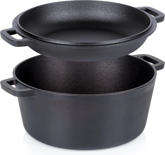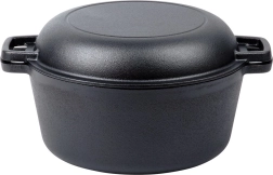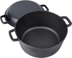 Чугунена тенджера с обем 4,5 л и практичен капак (1,6 л), който може да се използва и като плитък тиган или малък съд за печене. Изцяло чугунено изпълнение с отлично топлопровеждане и задържане на топлината, благодарение на което ястията са сочни, равномерно изпечени и дълго остават топли при сервиране.