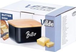 Тази практична масленка съчетава модерен вид с функционалност – черно боядисана стомана с бял надпис „Butter“ и естествен бамбук оформят непреходен аксесоар за всяка кухня. Благодарение на капака маслото остава защитено, свежо и с устойчив аромат, като винаги е готово за сервиране.