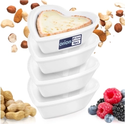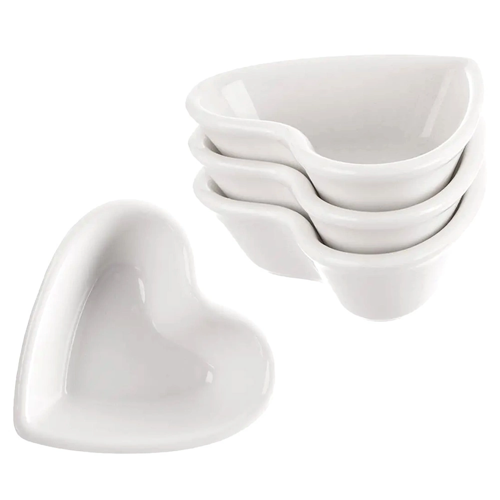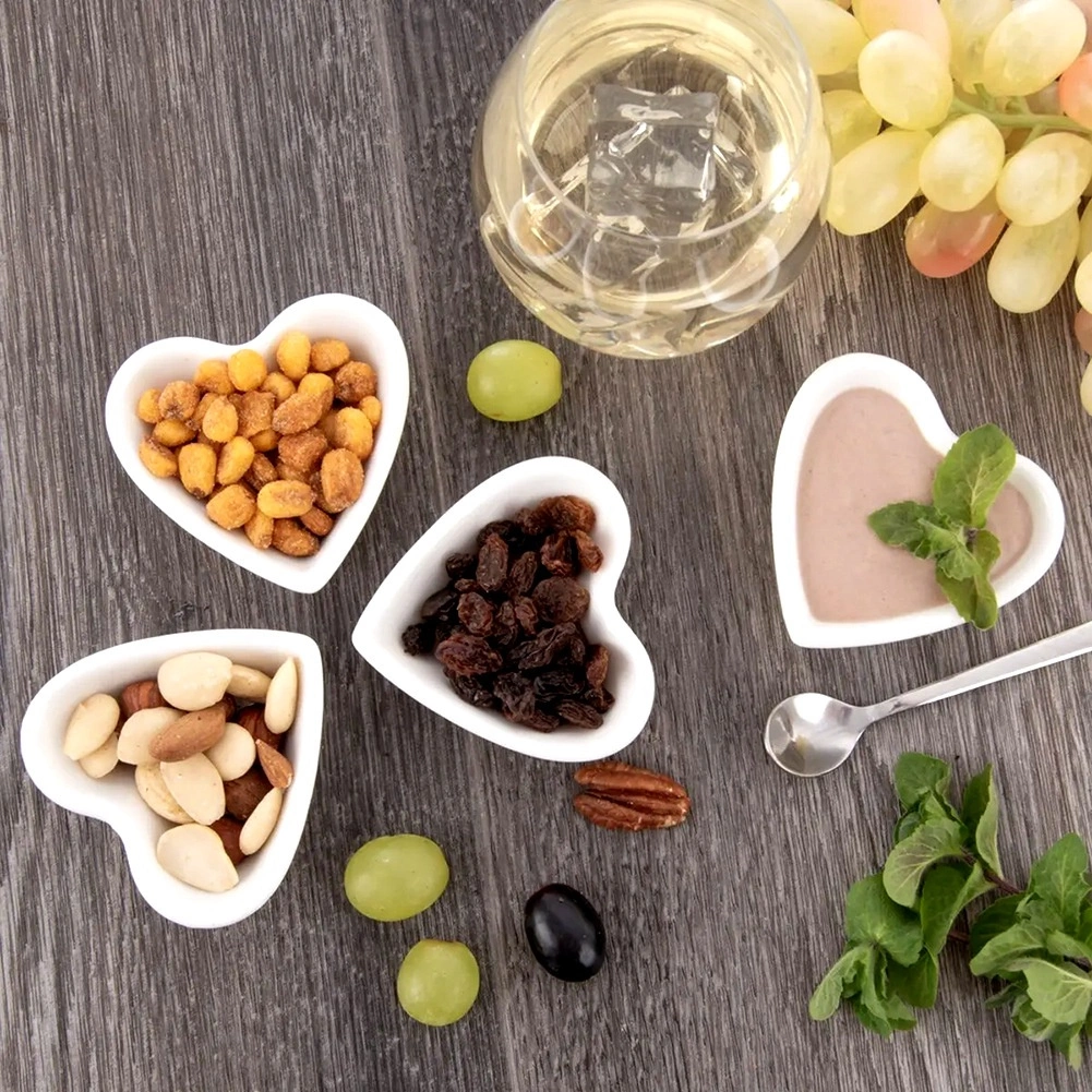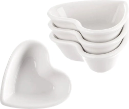 Внесете щипка елегантност на масата с тези порцеланови купички във форма на сърце. Подходящи за дребни похапки, сушени плодове, ядки, сосове, дипове и малки десерти. Благодарение на компактните размери и стоваряемия дизайн пестят място и изглеждат декоративно на всяка трапеза.