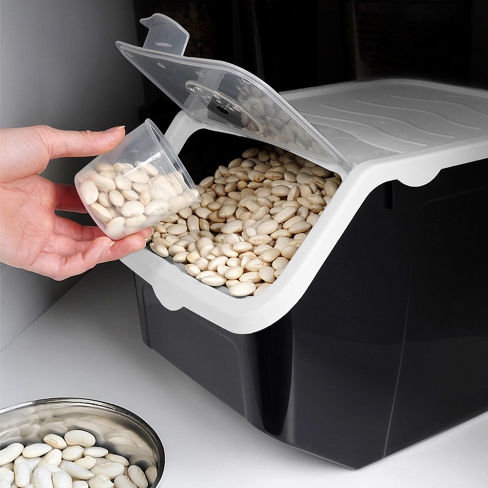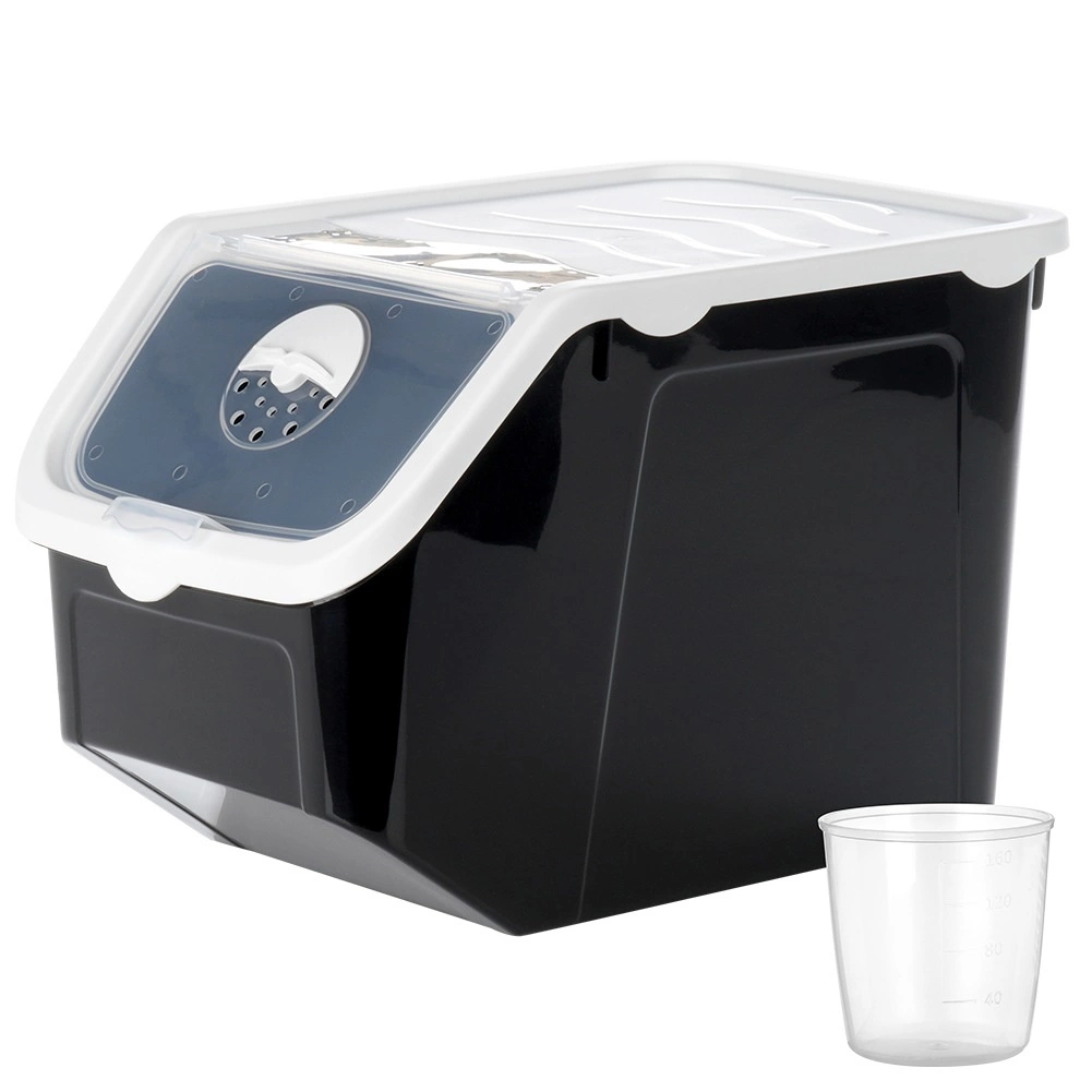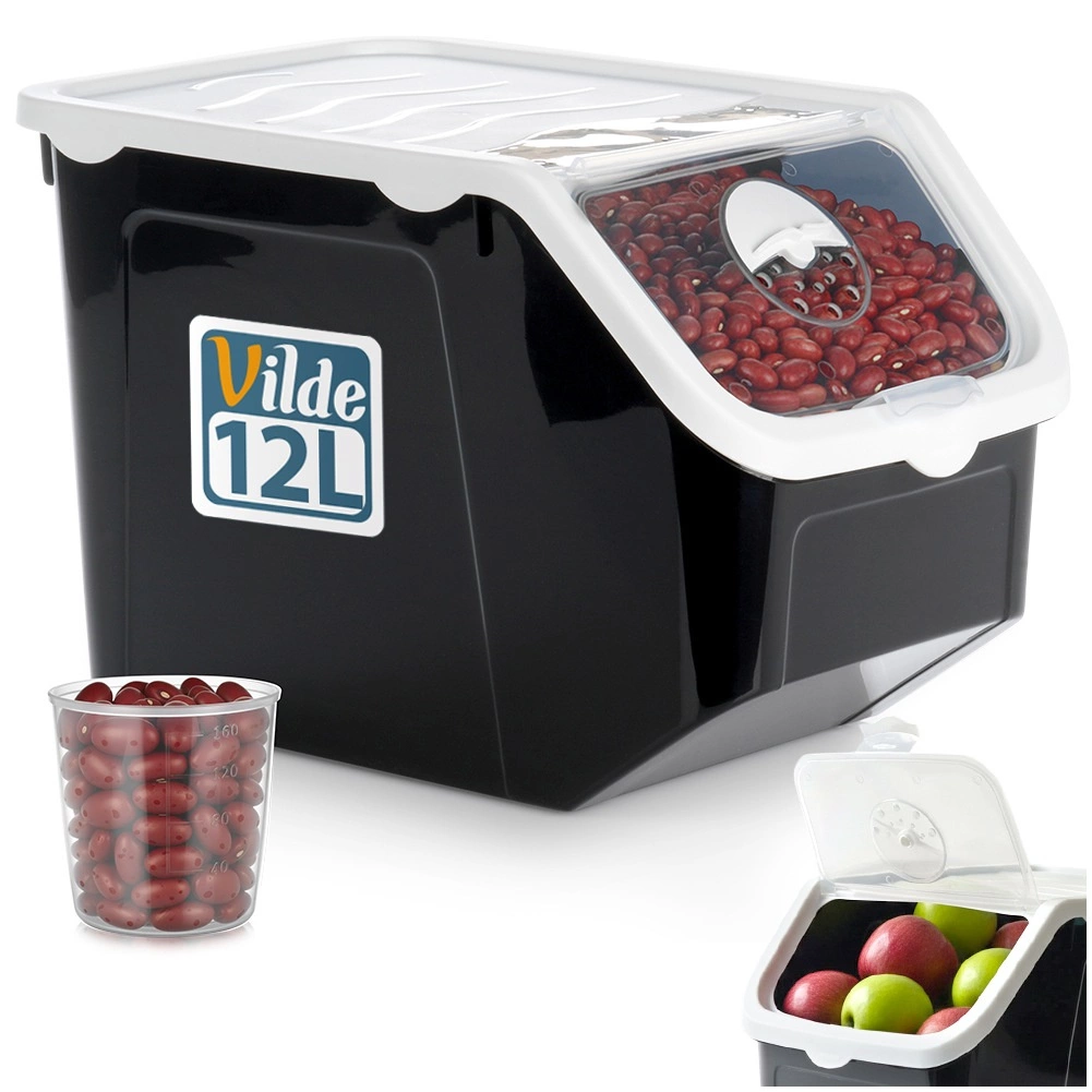 Практичен кухненски контейнер с обем 12 л за плодове, зеленчуци и насипни храни. Има вентилационна регулация в капака, прозрачен отваряем люк за лесно дозиране и уплътняващ капак за по-дълга свежест. В комплекта е включена мерителна чашка 40–160 мл. Изработен от безопасна пластмаса без BPA, подходящ за контакт с храни, фризер и съдомиялна, температурна устойчивост -20 °C до 100 °C.