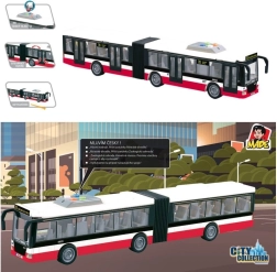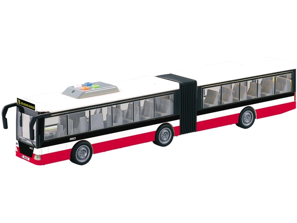 Този детайлно изработен съчленен автобус носи на децата реалистично изживяване от градския транспорт. Благодарение на инерционното задвижване се потегля лесно, а светлинните аксесоари заедно с чешките съобщения за спирките усилват играта и развиват въображението.