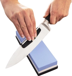 Синята страна 1000 бързо възстановява острието, бялата 3000 го полира до гладкост. Идеална комбинация за остри и дълготрайни резултати.