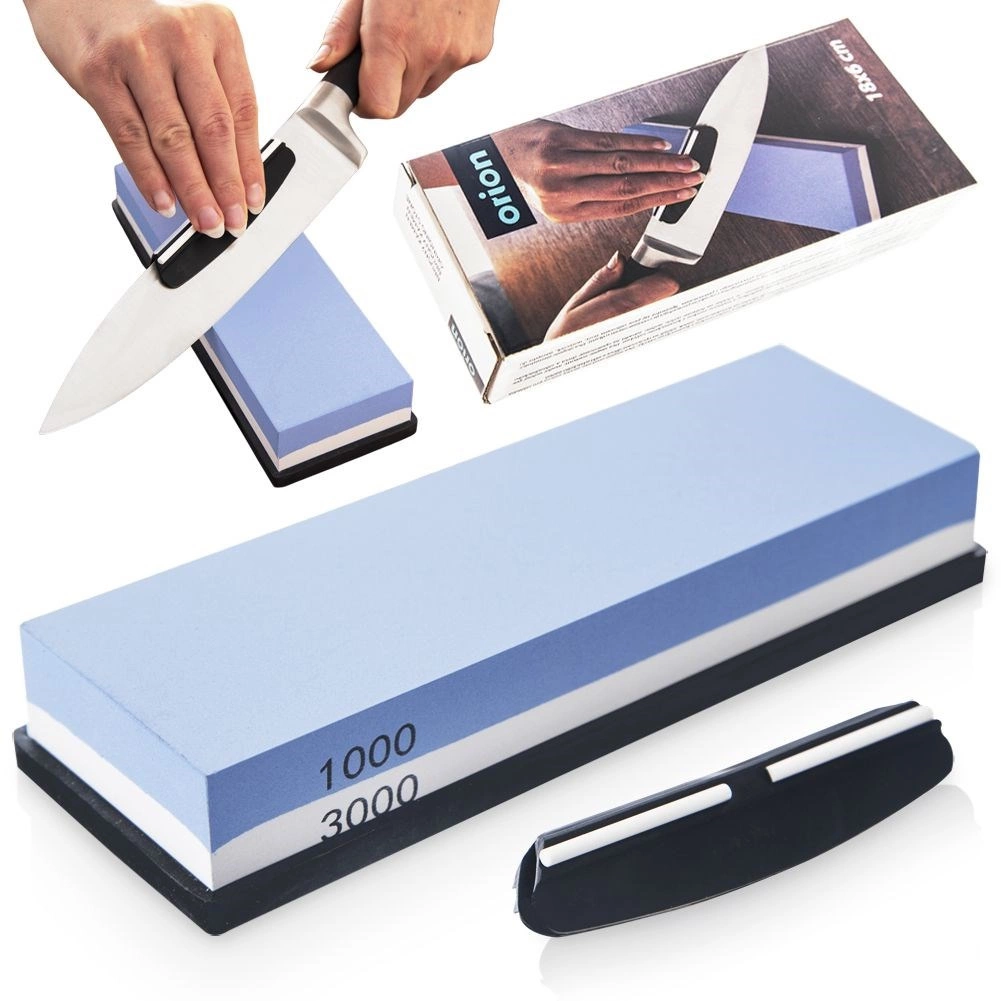 Шлайф камъкът ORION комбинира висококачествен корунд в две зърнистости 1000/3000 и безопасно заточване благодарение на противоплъзгащата подложка. Синята страна (1000) бързо възстановява острието, бялата страна (3000) го полира фино за перфектно гладък разрез. Ъгловият водач поддържа правилния наклон на острието в диапазона 15–20°, като осигурява последователни резултати дори за начинаещи.