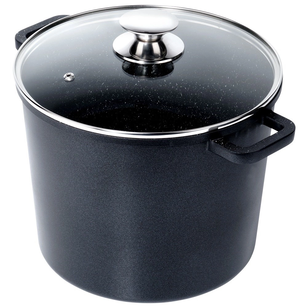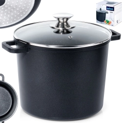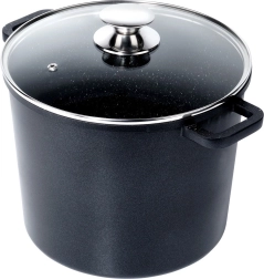 Голяма висока тенджера GRANDE с обем 7,6 l и диаметър 25 cm е идеална за варене на супи, задушаване и ястия за цялото семейство. Алуминиево тяло с вътрешно нелепливо гранитно покритие PFLUON осигурява лесно готвене с минимум мазнина. Стъклен капак с паравен, равномерно разпределение на топлината и съвместимост с всички видове котлони, включително индукционни правят тази тенджера универсален избор за всяка кухня.
