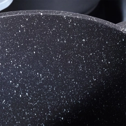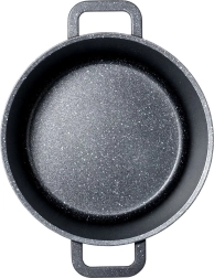 Вътрешната повърхност е устойчива, нелеплива и без PFOA/PTFE. Готвене с минимум мазнина, лесно отделяне на храната и лесно почистване.