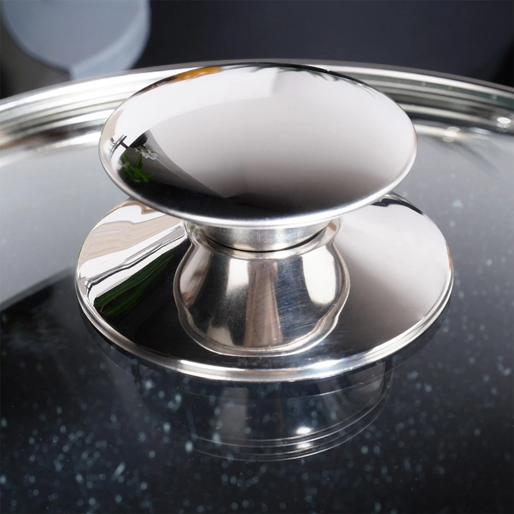 Закалено стъкло с неръждаем ръб и практичен вентил за отвеждане на излишната пара. Контролирайте готвенето без излишно повдигане на капака.