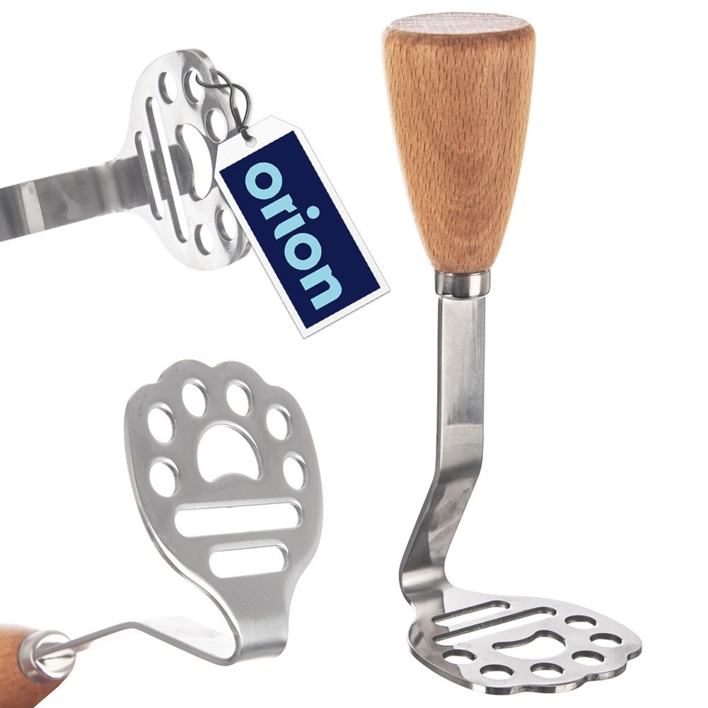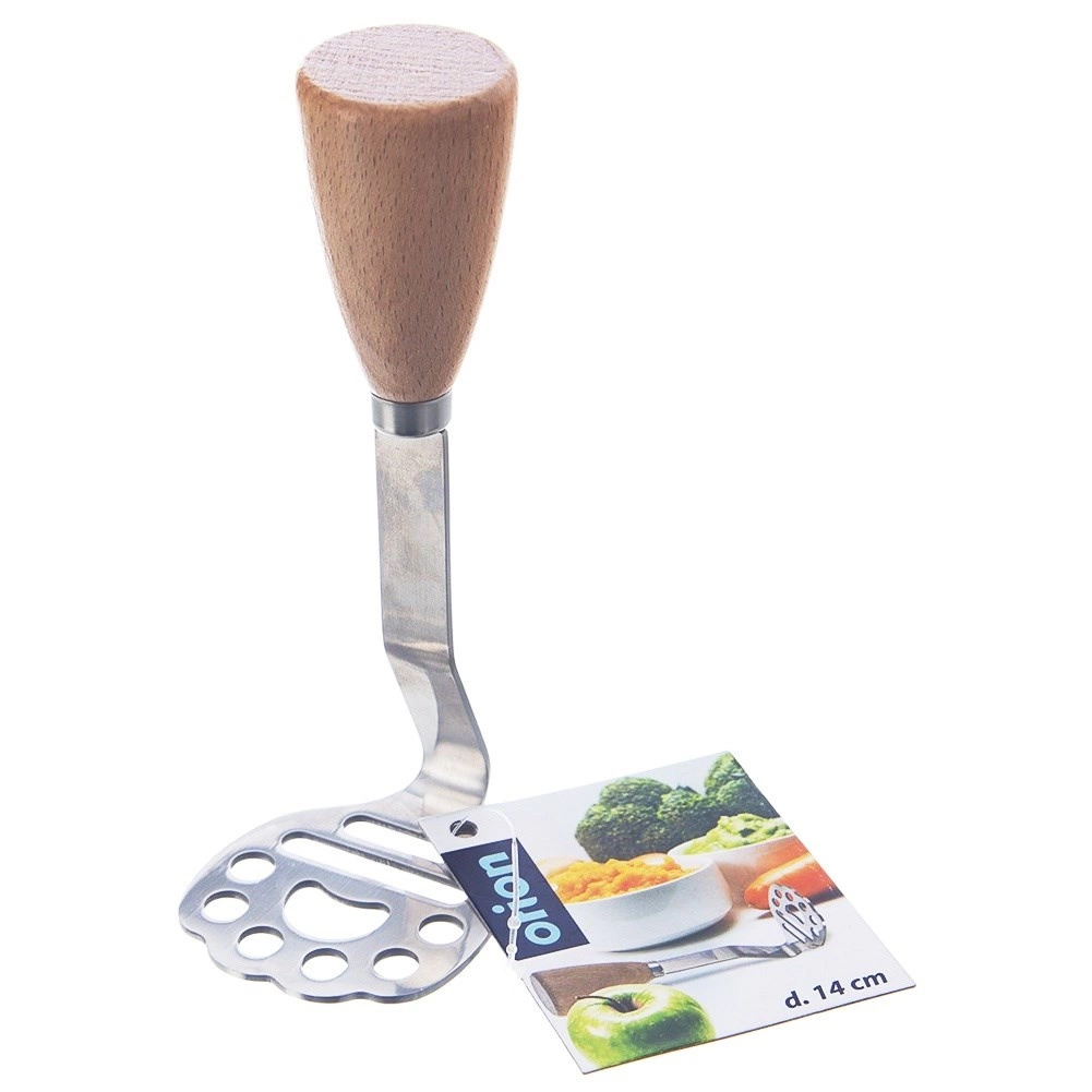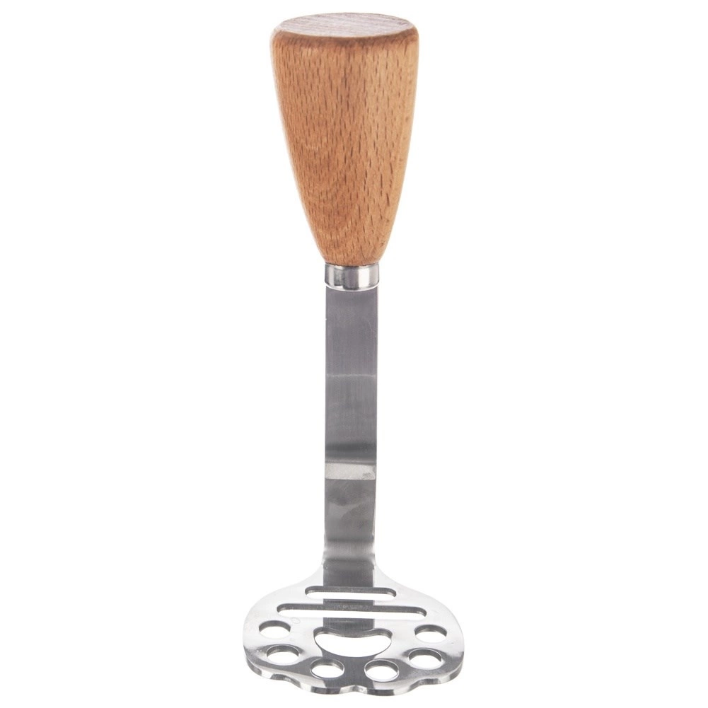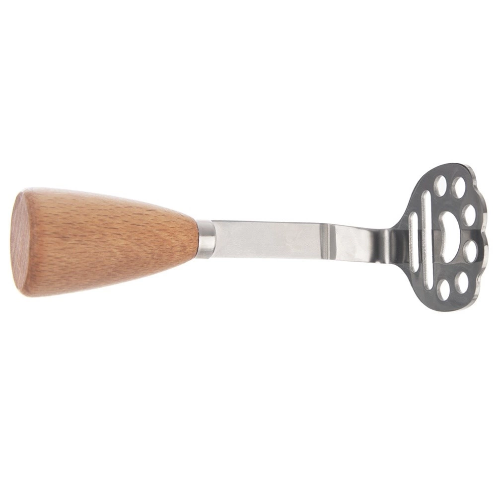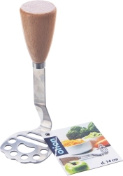 Практична преса за картофи и зеленчуци от висококачествена неръждаема стомана с ергономична дървена дръжка, която осигурява гладко пюре без усилие. Компактни размери 5,5 × 14,5 см, издръжлива изработка, лесно почистване и универсално приложение за картофи, зеленчуци, плодове и пасти/намазки.