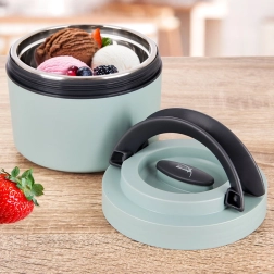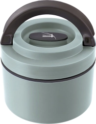 Компактният термос за храна с обем 620 ml запазва вашите ястия дълго време топли или студени. Вътрешната част е от неръждаема стомана, външната обвивка е в ментолов цвят, а силиконовото уплътнение осигурява 100% плътност. Практично винтово капаче, сгъваеми дръжки за лесно пренасяне и вентилационен клапан за удобно отваряне. Идеален за обяд в работа, училище и за излети.