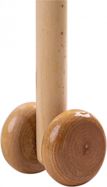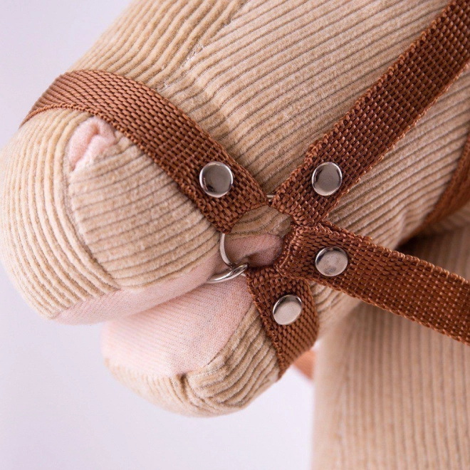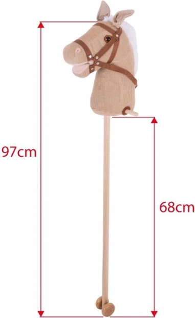 Кордовият кон на пръчка е идеалната играчка за деца, които обичат движението. Това конче има мека кордова глава, пухкава грива и практични юздички. Двете дървени колелца в края на пръчката позволяват гладко придвижване по равни повърхности, без да оставят следи.