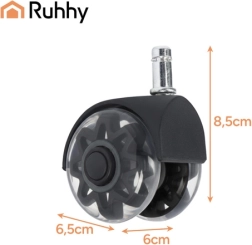 Колелцата RUHHY осигуряват комфорт и сигурност за вашия под и стол. Благодарение на меката PU повърхност се търкалят гладко върху ламиниран паркет, масивен паркет, плочки и килим, без да оставят драскотини. Стоманено лагеруване и подсилена конструкция гарантират дълъг живот и надеждност при ежедневна употреба.