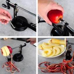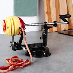 Практичен кухненски помощник, който в една операция бели, изважда семенника и реже ябълки, круши или картофи на ефектни спирали. Благодарение на прецизното водене и острите ножове получавате равномерни шайби, идеални за щрудели, хрупкав чипс, сушене или декоративно сервиране.