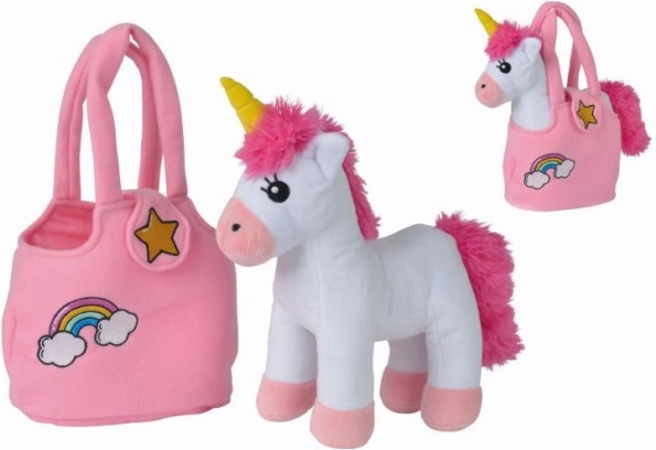 Този сладък плюшен еднорог се предлага с чантичка за лесно пренасяне и е идеалната играчка за деца и любители на фантастични създания.