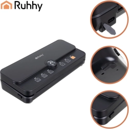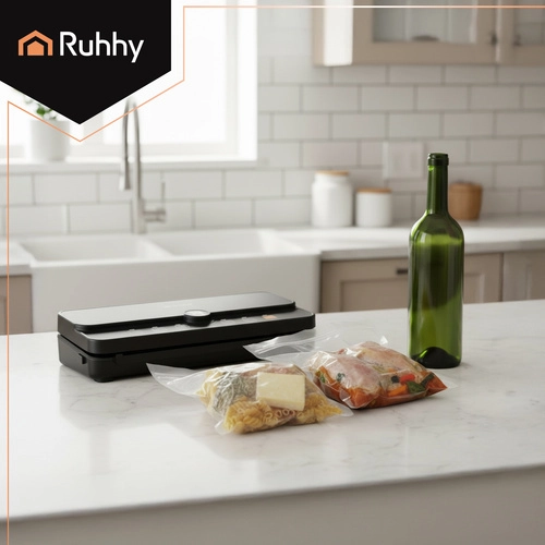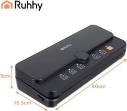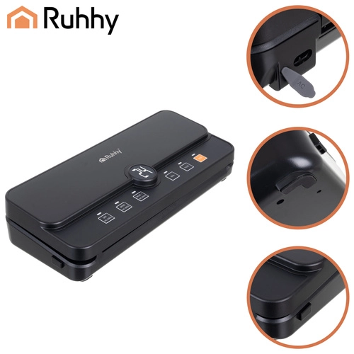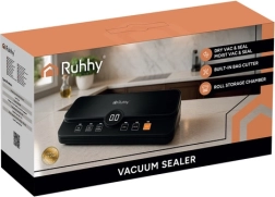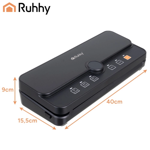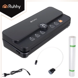 Практичната и надеждна вакуумна машина за запечатване на фолио RUHHY е идеална за домашно съхранение на храни и за sous‑vide. Благодарение на силния вакуум до -80 kPa и мощната помпа 9 l/min отстранява въздуха за секунди и създава здрав, равномерен шев. Вградените диспенсър за ролка и плъзгащ се резач ви позволяват да правите пликове с произволна дължина без ножици, спестявайки време и място.