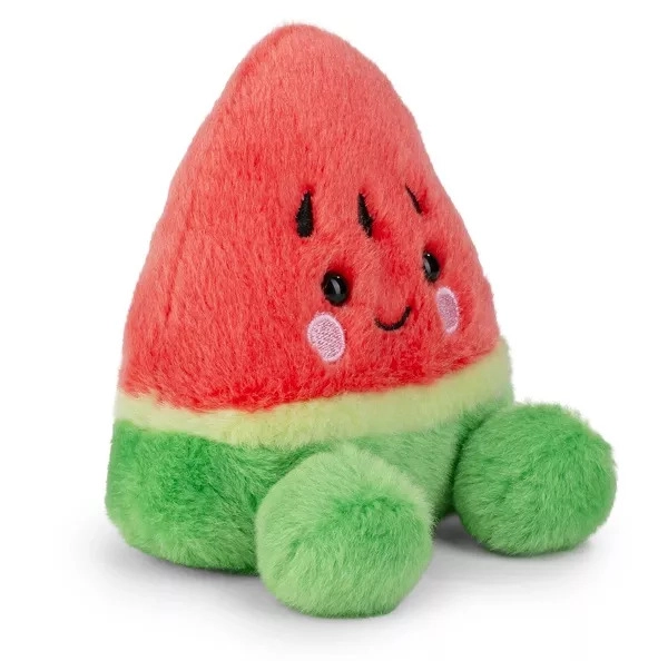Плюшената маскотка Palm Pals – диня ще ви спечели с триъгълната си форма, зелената „кора“, светлата лента и червената вътрешност с извезани семенца. Усмихнатото изражение с розови бузки придава индивидуалност и създава мигновено чувство за радост.