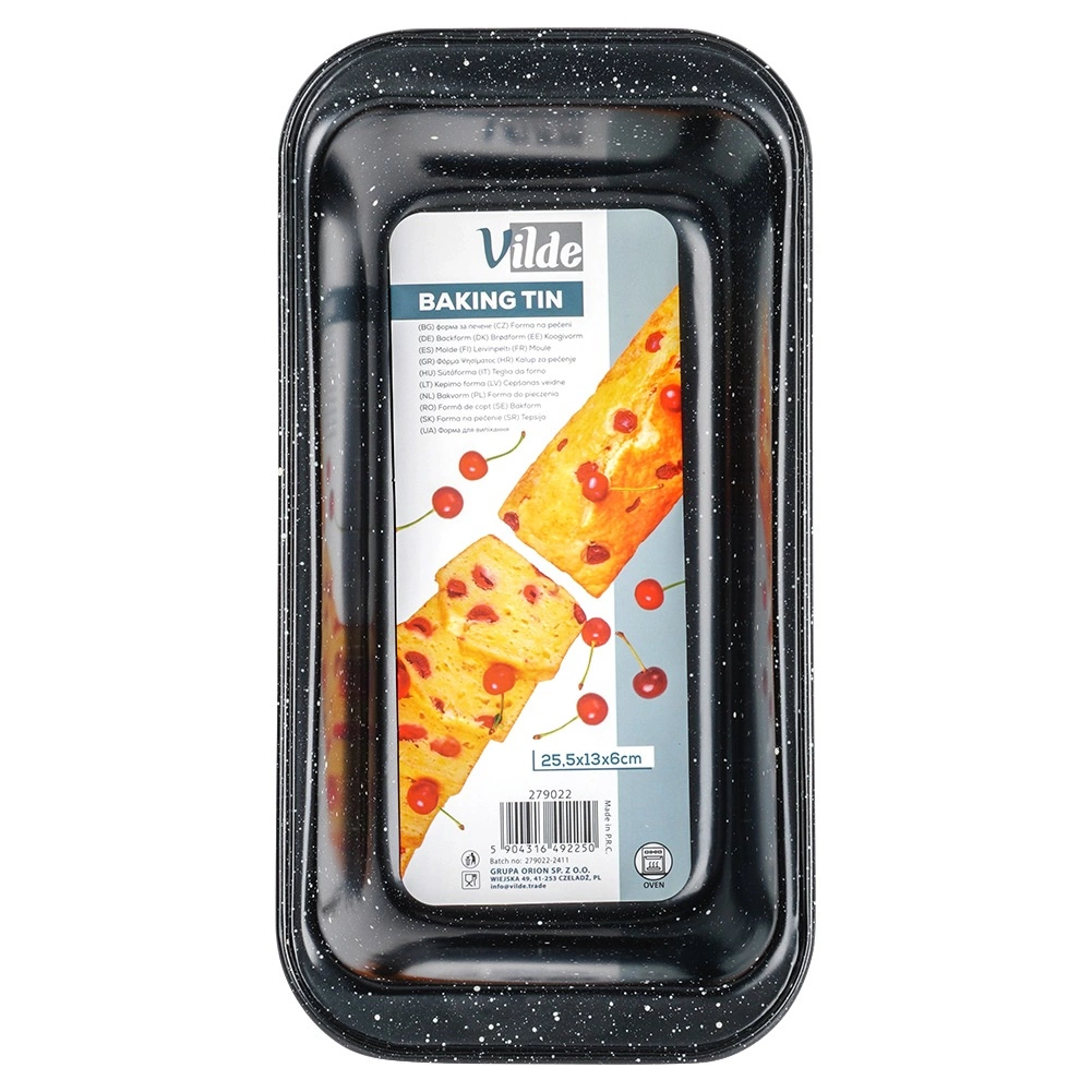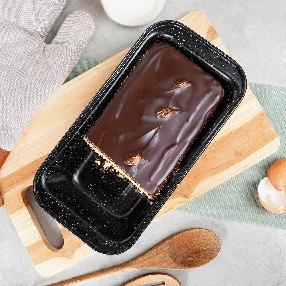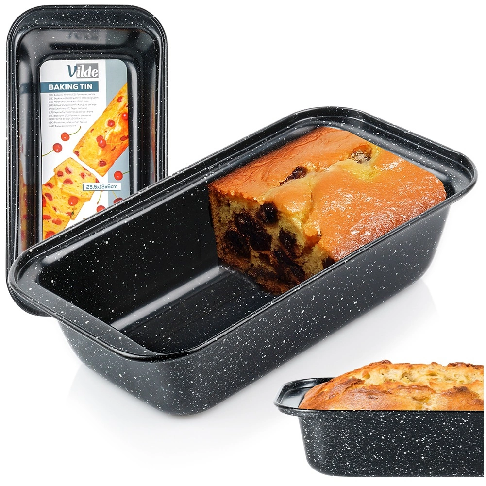 Тази правоъгълна форма от висококачествена въглеродна стомана с гранитно нелепливо покритие е идеална за домашно печене на хляб, кексове, бисквити и пастети. Материалът осигурява бързо и равномерно загряване, така че вашите изделия винаги ще бъдат красиво и равномерно изпечени.