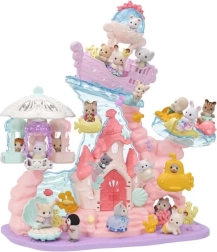 Открийте вълшебния подводен дворец SYLVANIAN FAMILIES, който превръща детската стая в царство на фантазията. Комплектът предлага въжен лифт, движещ се нагоре и надолу, въртележка с морски създания, возене в подводница и на жълта рибка. Включени са три кадифени фигурки на деца с подвижни стави, съкровищница, отварящи се врати и легло във форма на мида – идеално за креативна игра и развитие на фината моторика за деца от 3 години.