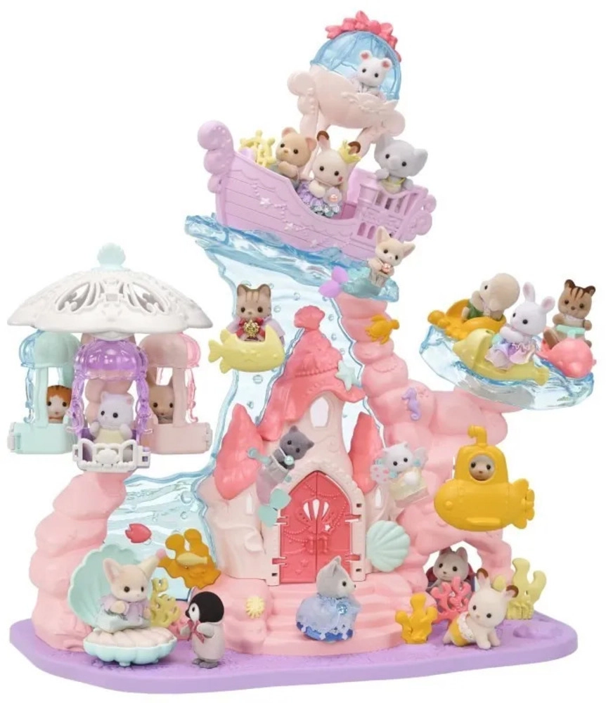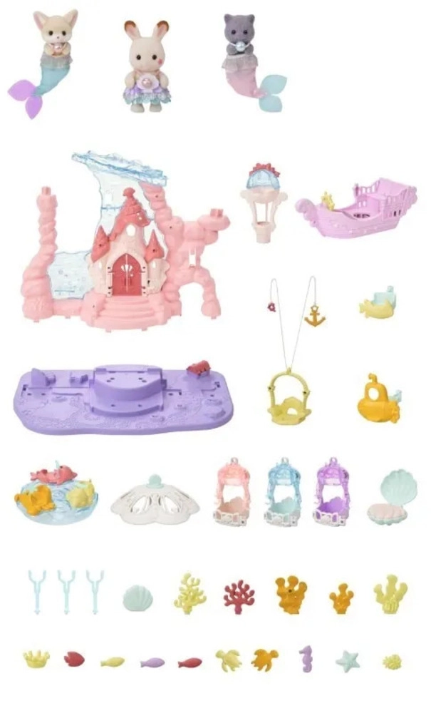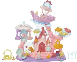 Влезте в свят на магия с подводния дворец, изпълнен с интерактивни функции. Децата могат да возят фигурките с лифта, да завъртят въртележката с медузи и морски създания, да плават в подводницата или да се повозят на очарователната жълта рибка. Богатите детайли, полупрозрачните елементи и пастелните цветове създават очарователна сцена за безкрайни истории.