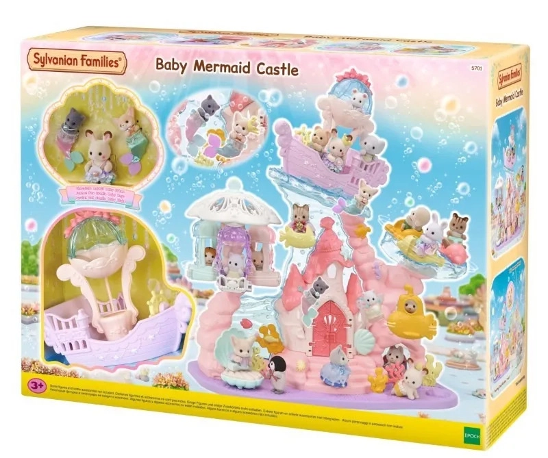 - Богати аксесоари: дворец, 3 фигурки, въжен лифт, въртележка, подводница, жълта рибка, съкровище, отварящи се врати, легло мида.