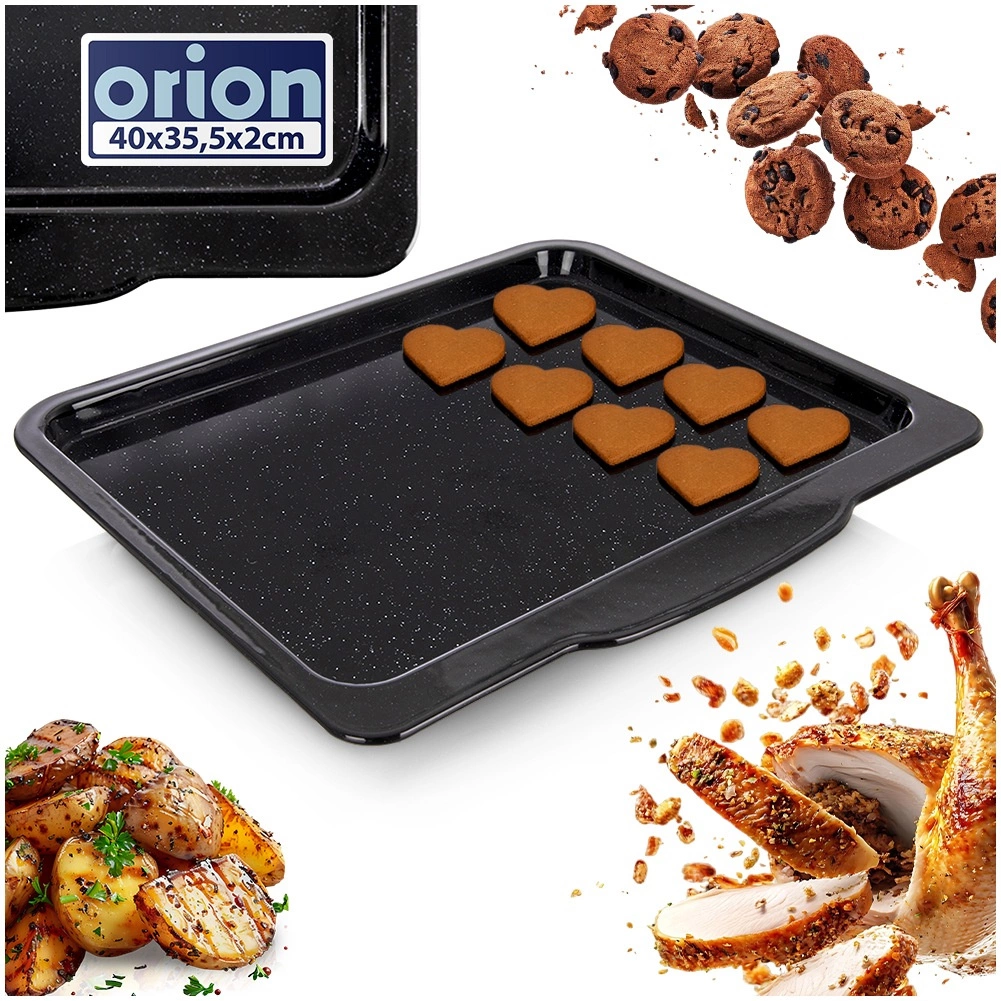 Тази универсална емайлирана тава е незаменим помощник във всяко домакинство. Издръжливата стомана с качествено смалтовано покритие издържа на високи температури, устойчива е на надраскване и позволява лесно поддържане на чистота. Външните размери 40 × 35,5 × 2 см и вътрешните 37 × 29,5 × 1,5 см осигуряват достатъчно място за печене на сладки и солени изкушения.