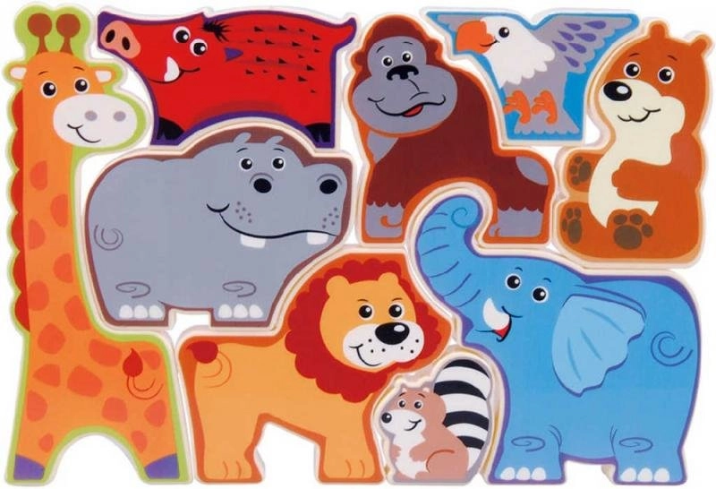 Пъзелът съдържа цветни животински фигурки, които привличат вниманието на всяко дете и стимулират въображението му.