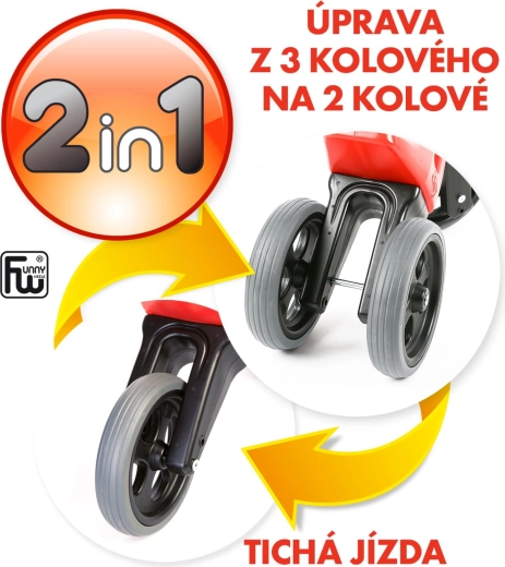 Оригиналното чешко балансиращо колело FUNNY WHEELS Rider Sport е създадено да улесни първите стъпки към карането на велосипед. Благодарение на системата 2в1 за няколко минути го превръщате от триколка в двуколка, а с двете височинни позиции на седалката (разлика 3 cm) то съпътства детето в различните етапи на растеж.