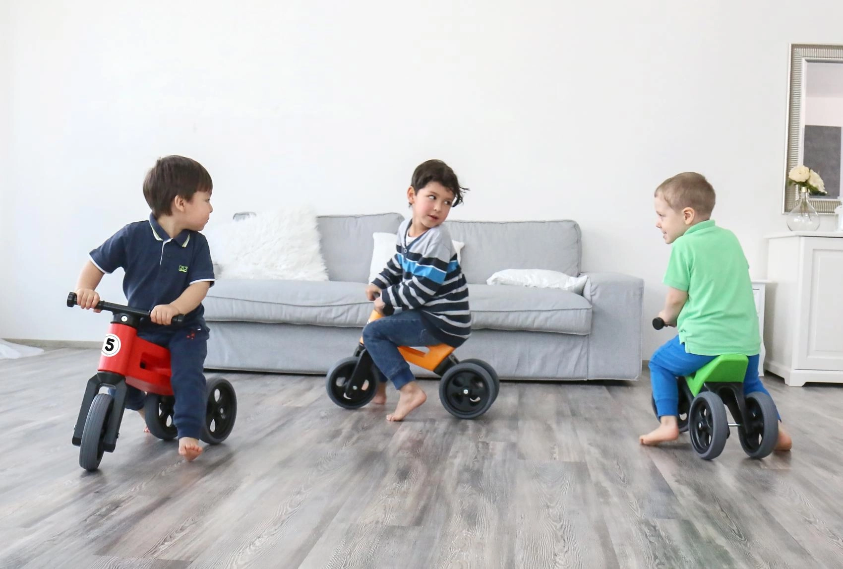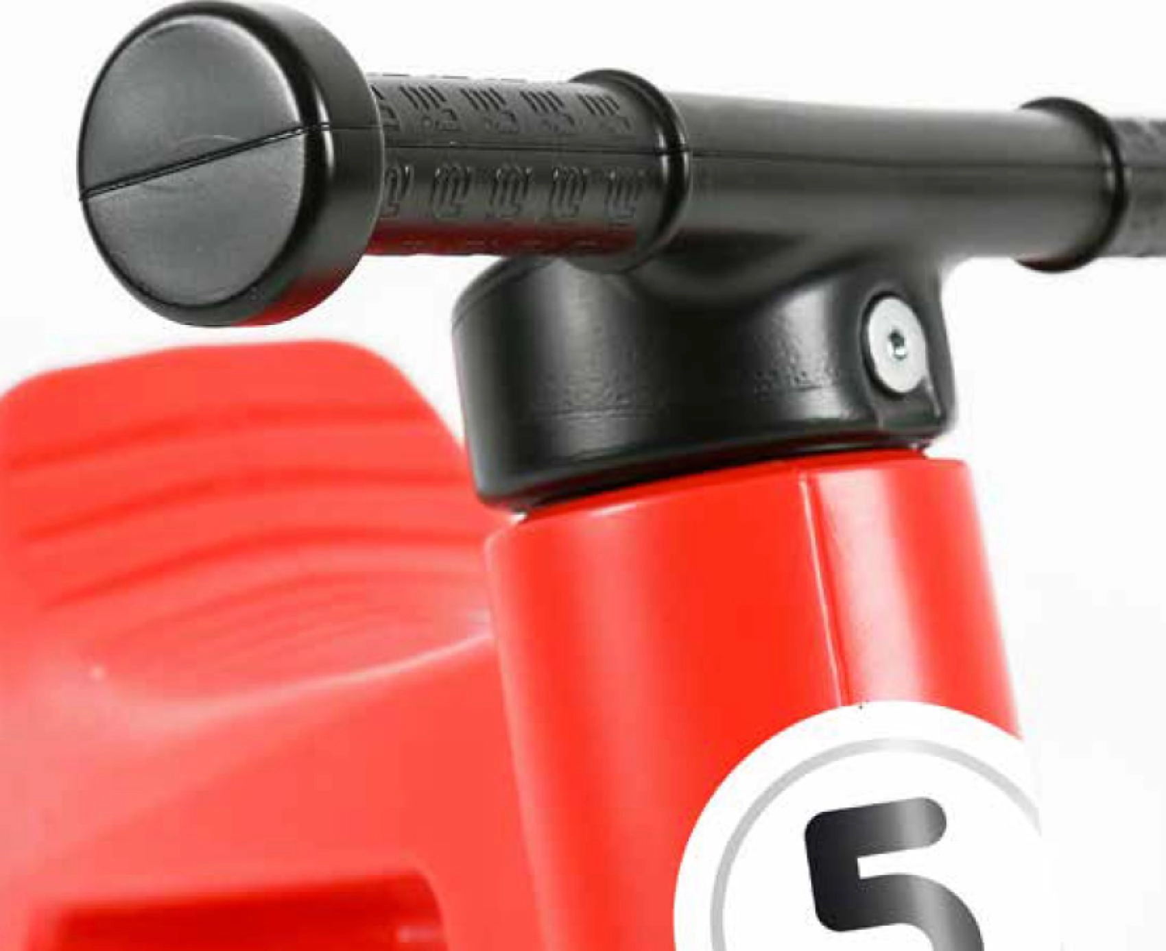Колелото има тихи гуми, които не се плъзгат, гладка и безопасна изработка от издръжлива, безвредна пластмаса и ограничен ъгъл на завъртане на вилката, за да не се пренавиват кормилата. Децата естествено тренират равновесие, координация и моторика и се забавляват както у дома, така и навън.