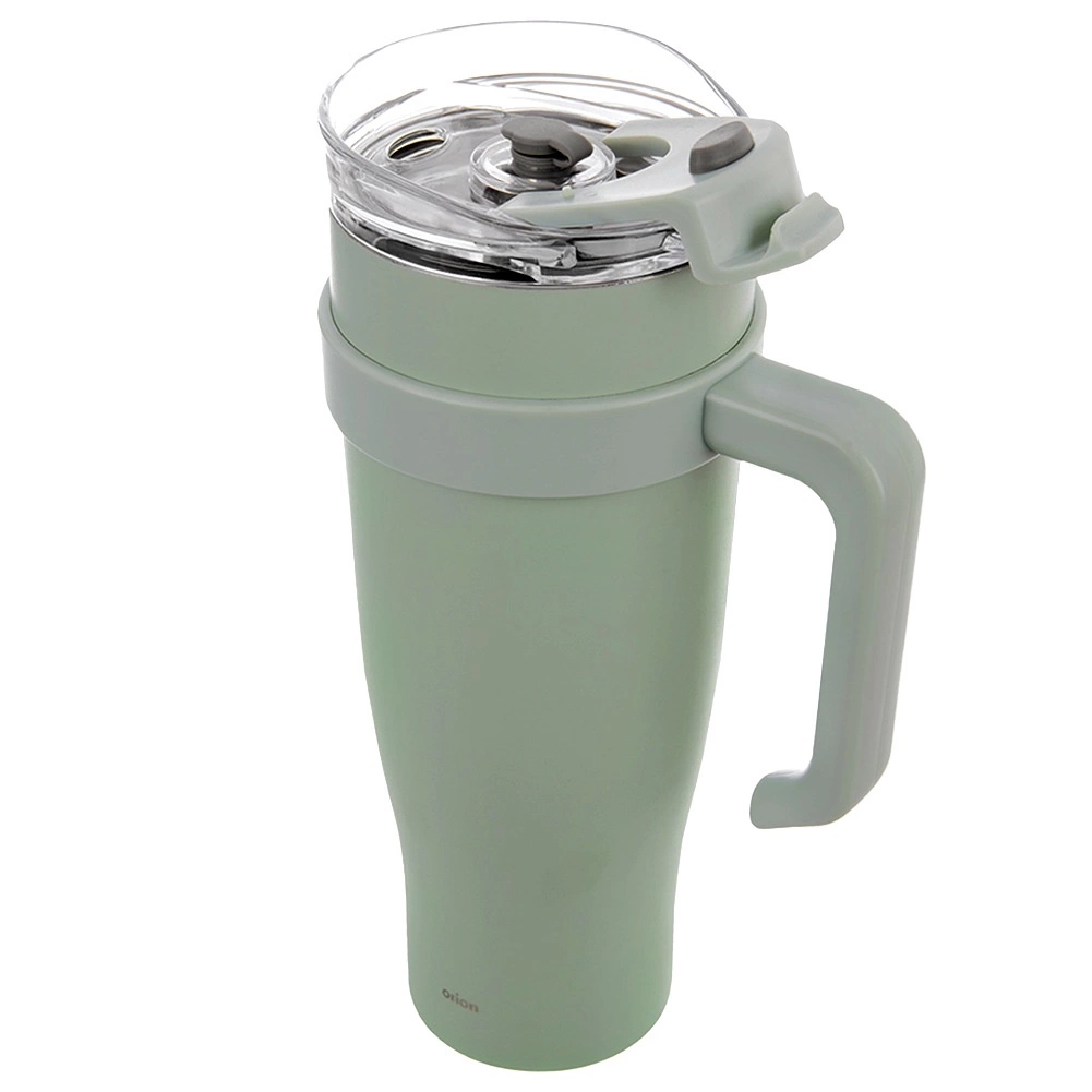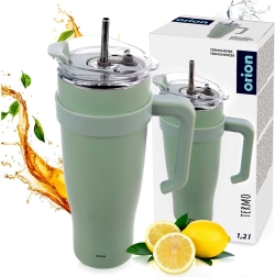 Голямобемна термо чаша с дръжка и сламка за удобното пиене поддържа напитките горещи до 12 часа и студени до 8 часа. Благодарение на двойната стена с вакуумна изолация, уплътняващия капак и издръжливата неръждаема стомана е идеална за работа, автомобил и пътувания.