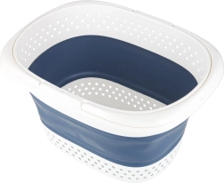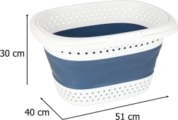 Тази голяма, но компактна след сгъване кошница за пране предлага интелигентно решение за ежедневно сортиране и пренасяне на прането. Гъвкавият център от издръжлив силикон позволява бързо сгъване до плоска форма, докато здравият ръб и дъно запазват формата по време на употреба. Благодарение на перфорираните стени въздухът циркулира и прането не застоява.