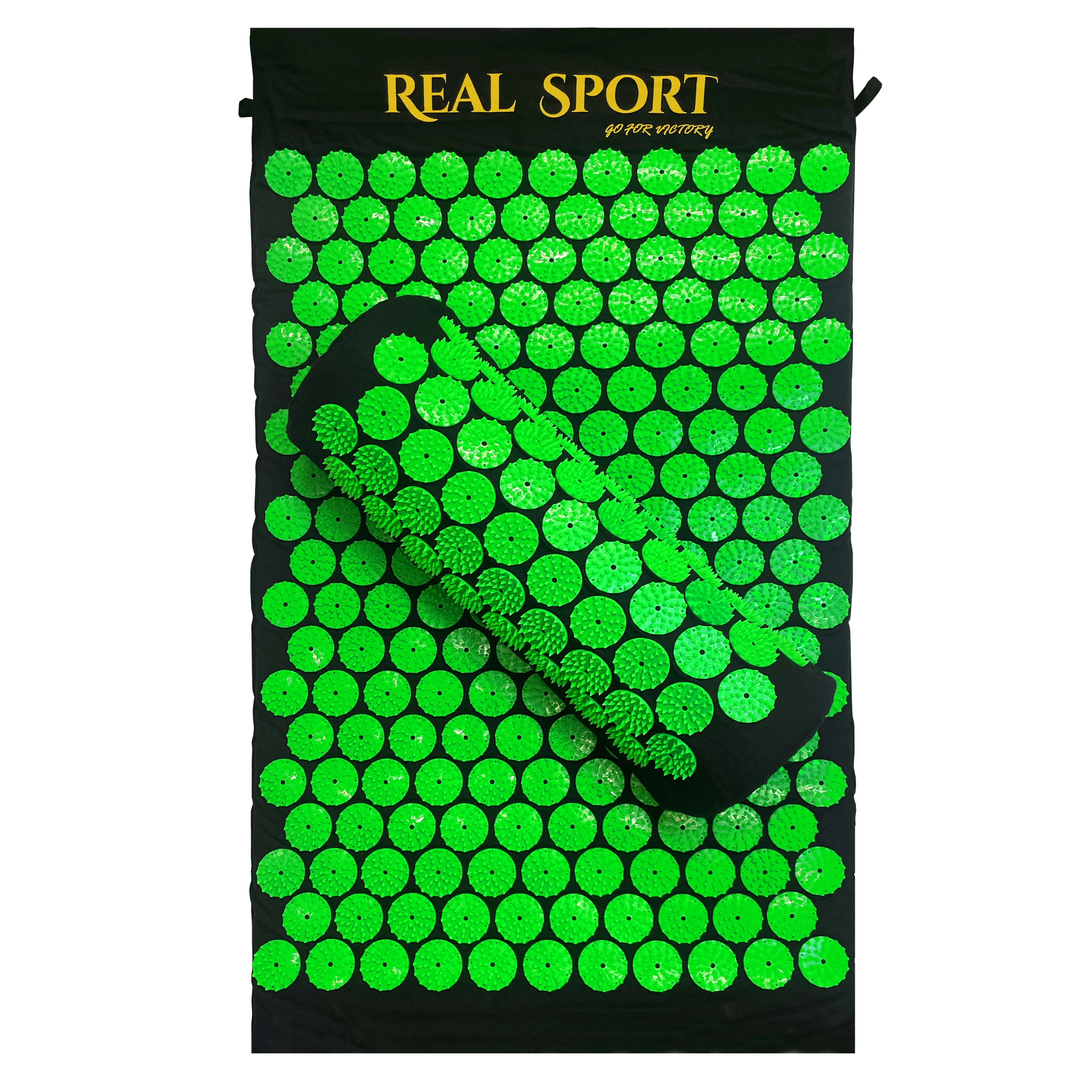 Зелените дискове с шипове активират точките на натиск по цялата дължина на гърба и във врата, като подпомагат отпускането на мускулите и по-доброто кръвообращение.