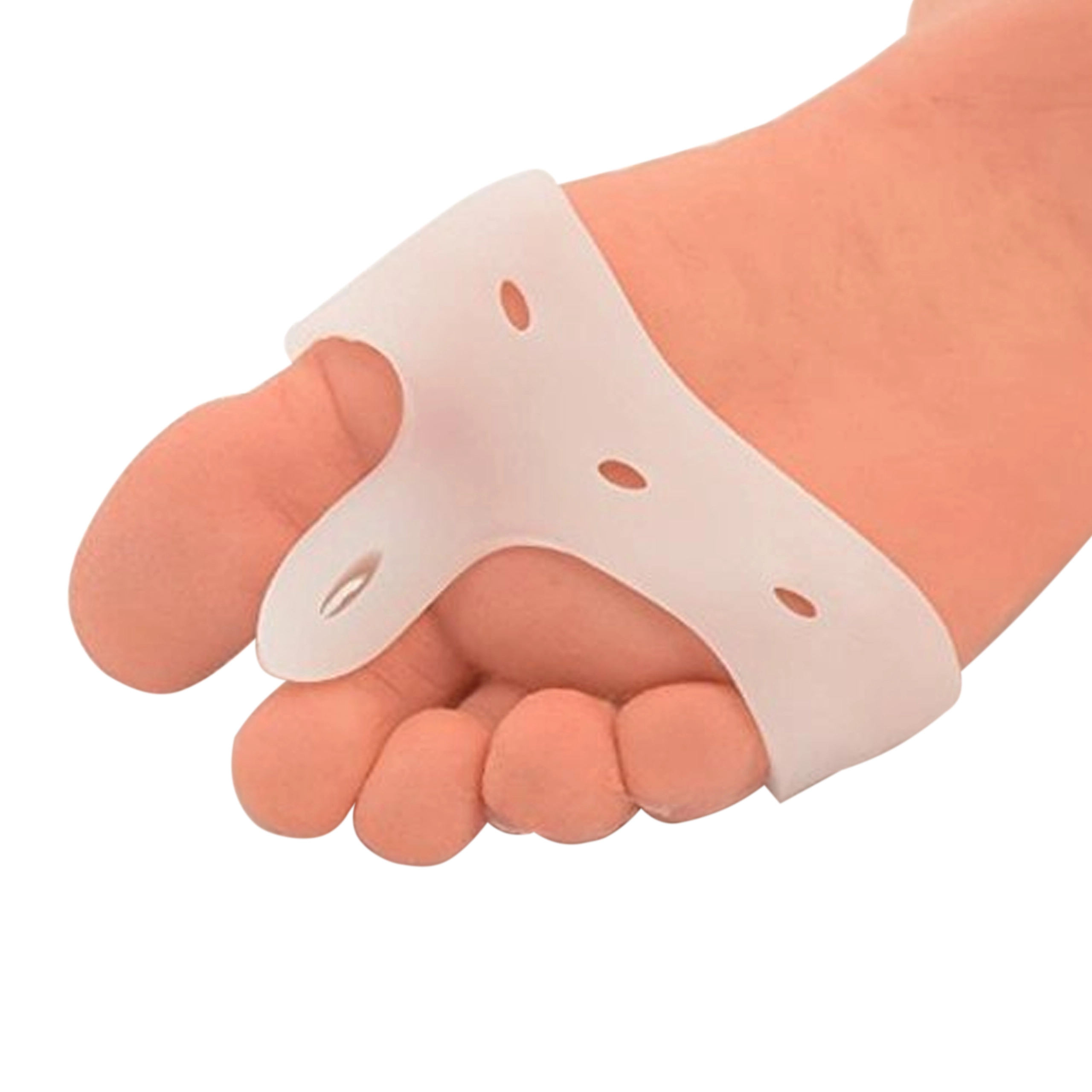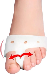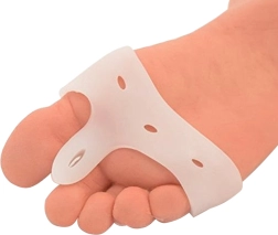 Практичен силиконов помощник за комфорт при ходене и ежедневно носене на обувки. Разделителят нежно разширява пространството между палеца и втория пръст, като подпомага правилното подреждане на пръстите и намалява натиска върху ставата на палеца. Мекият, еластичен силикон се адаптира към формата на стъпалото и осигурява незабавно облекчаване на триенето и мазолите.