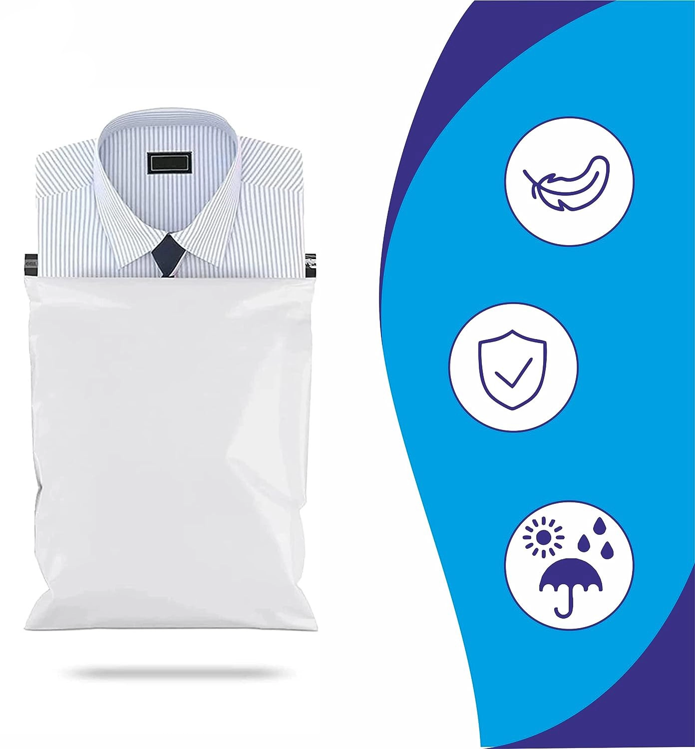 Тези бели поли пликове са проектирани за бързо и сигурно опаковане. Благодарение на peel‑and‑seal самозалепващата лента пликът се затваря лесно без нужда от тиксо и се получава запечатана и tamper‑evident (видимо нарушена при отваряне) опаковка. Лекият дизайн намалява транспортните разходи, като същевременно защитава съдържанието от влага и замърсявания.