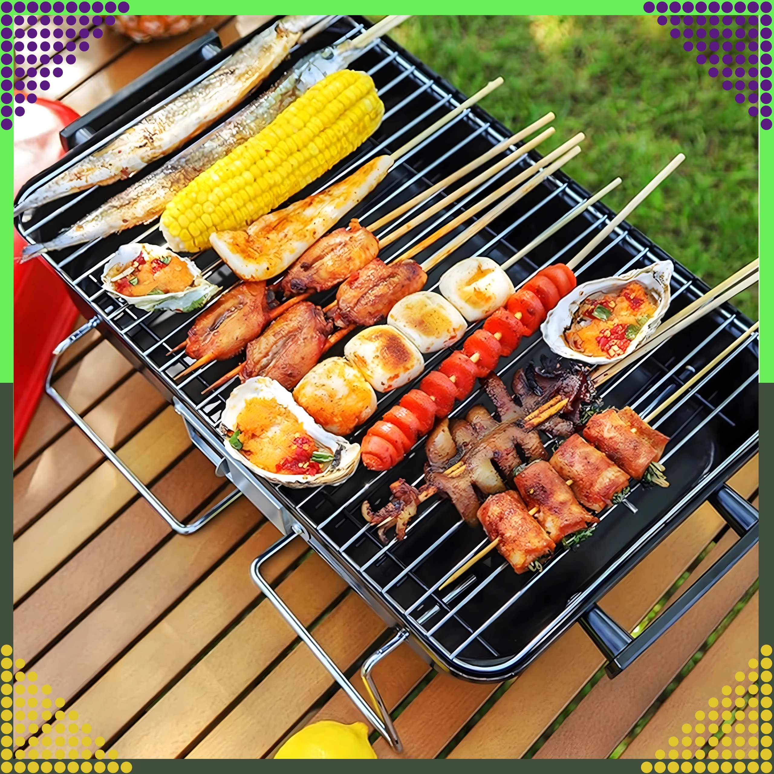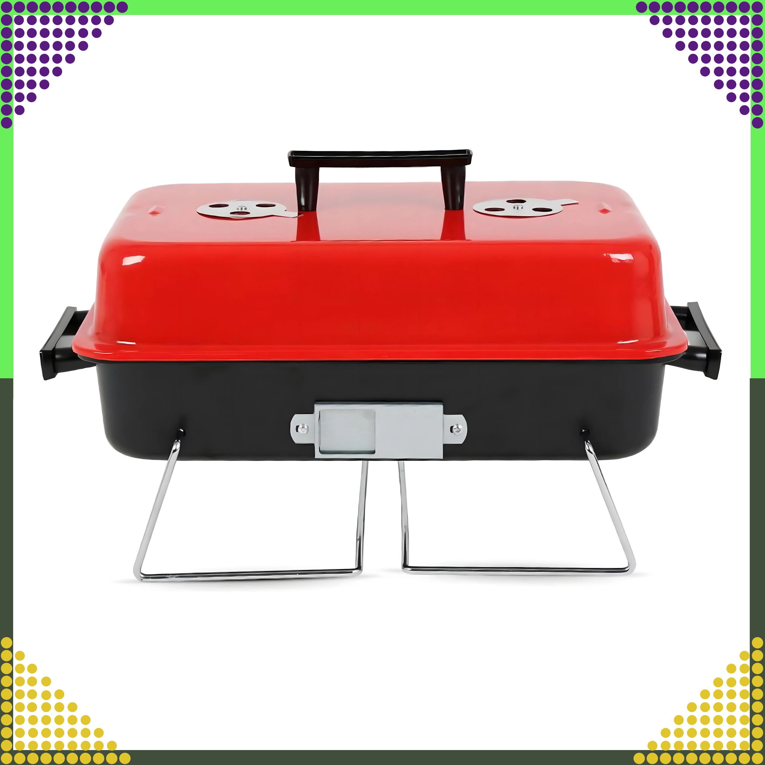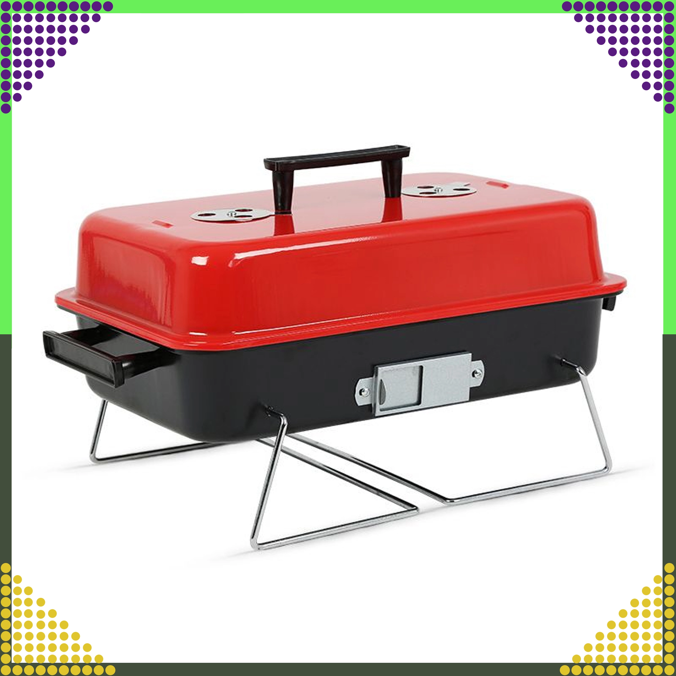 Сгъваемите крака и фиксираният капак позволяват удобно пренасяне и съхранение – идеално за къмпинг, пикник и пътуване с кола.