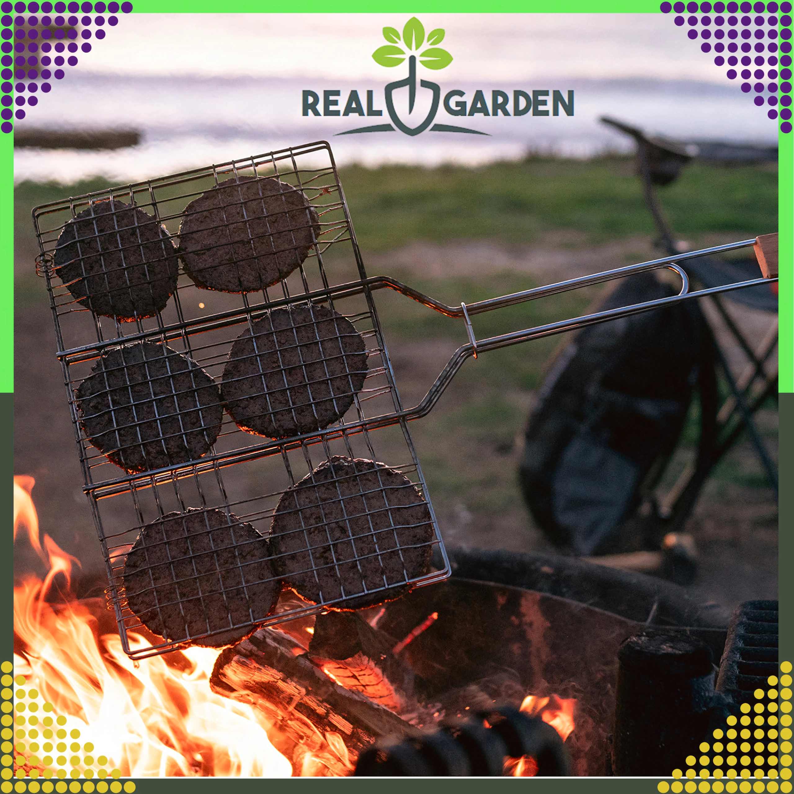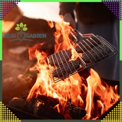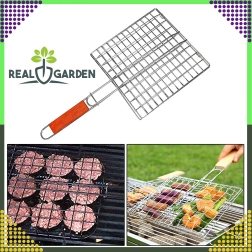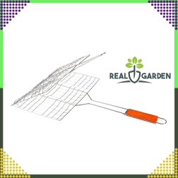 Край на разпадащите се порции и загарянето – тази двустранна скара със заключваща решетка държи храната здраво на място и позволява удобно обръщане наведнъж с помощта на ергономична дървена дръжка. Отличен избор за печене в двора, на вилата или при къмпингуване.