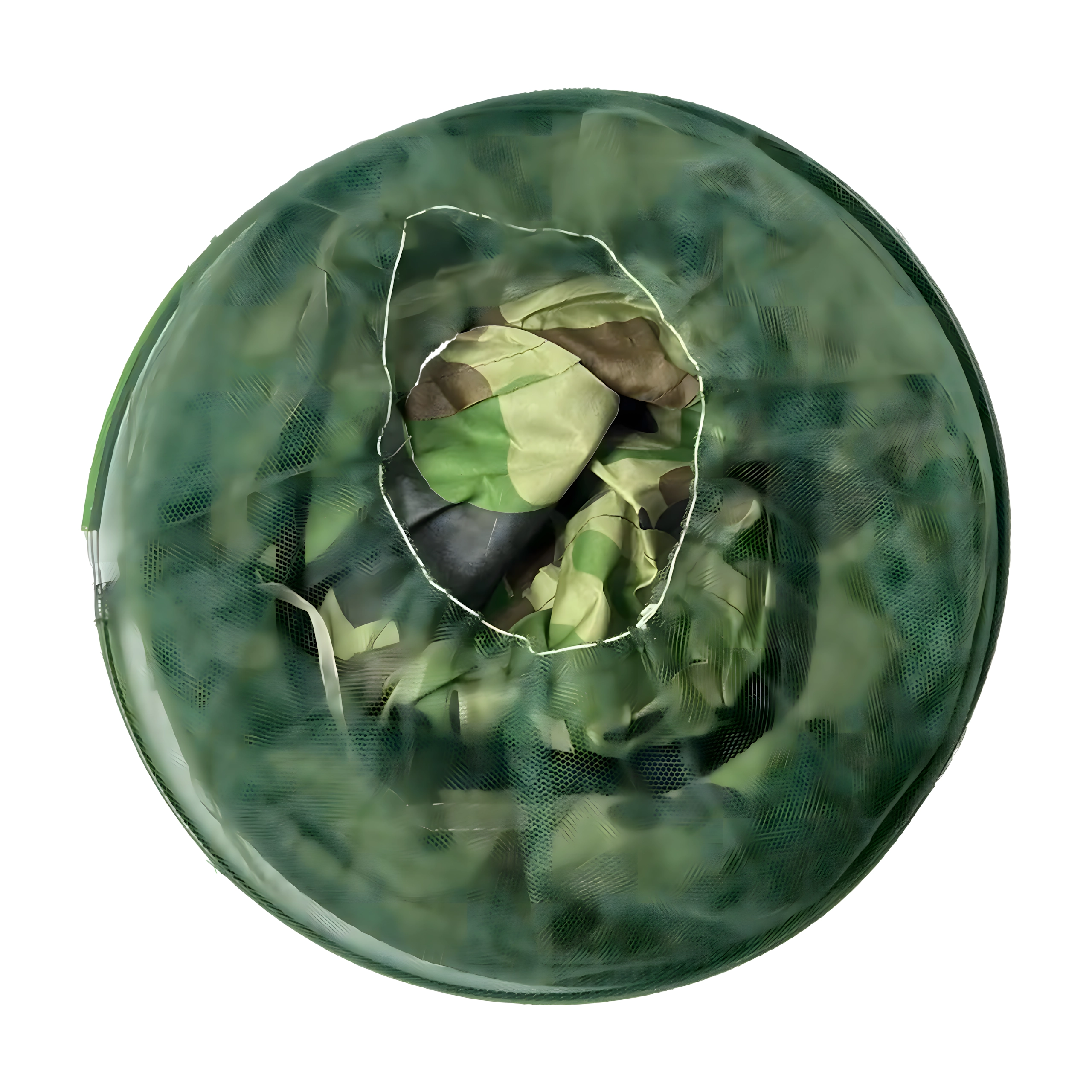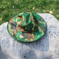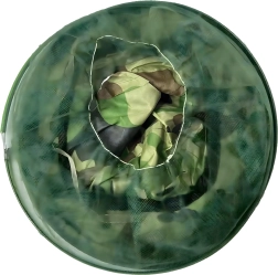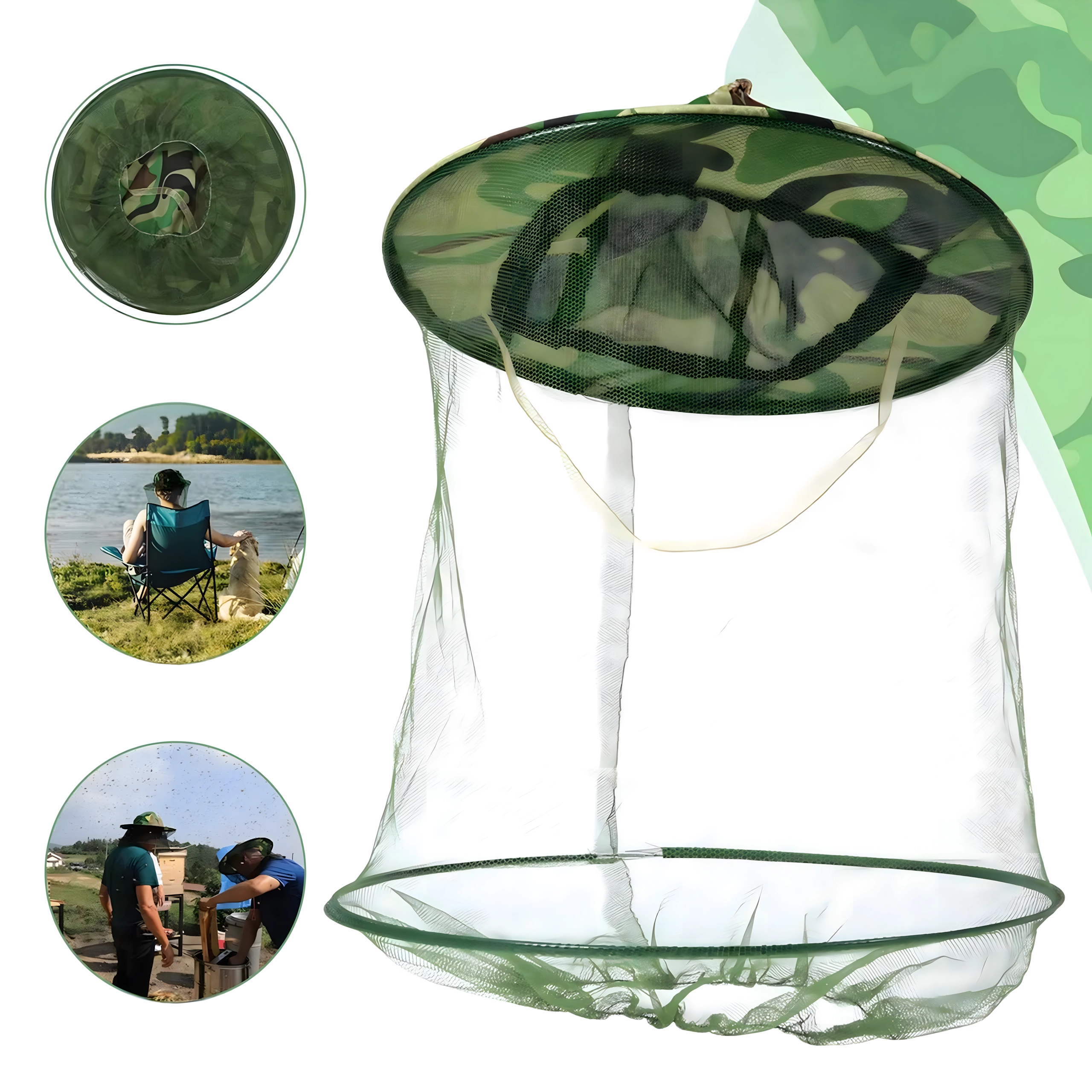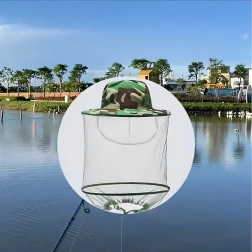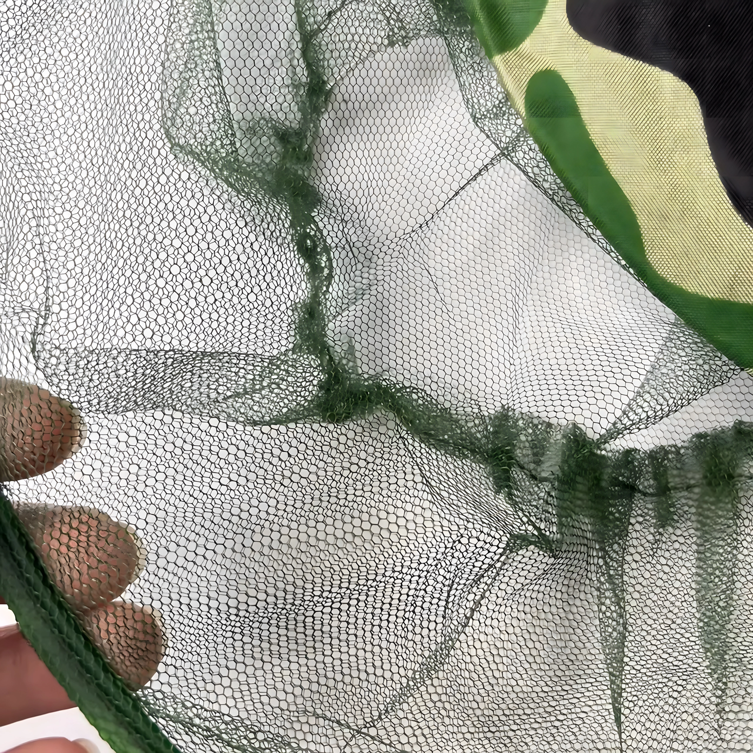 Широката периферия държи мрежата далеч от лицето, а камуфлажният десен е подходящ за рибари, ловци и любители на аутдора.