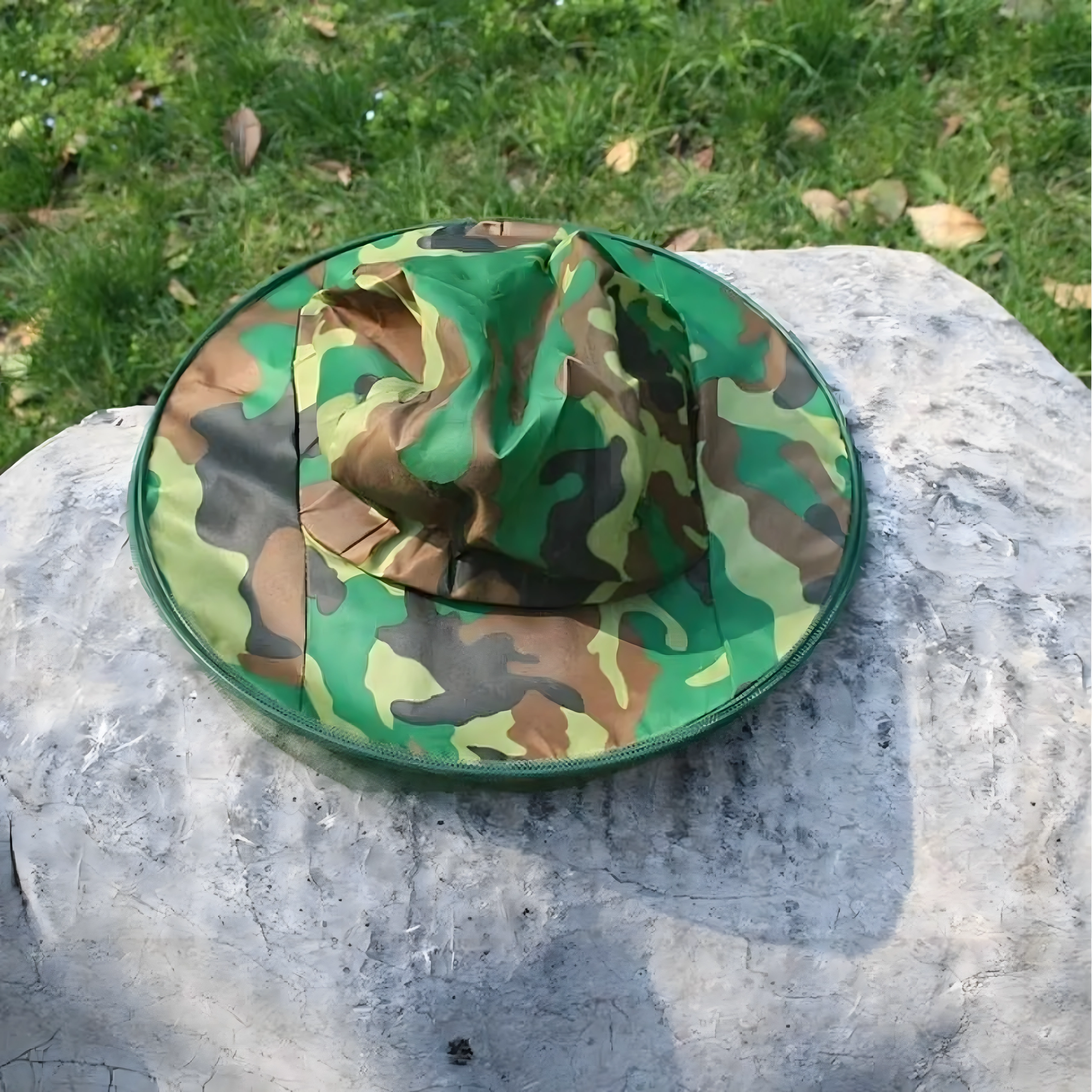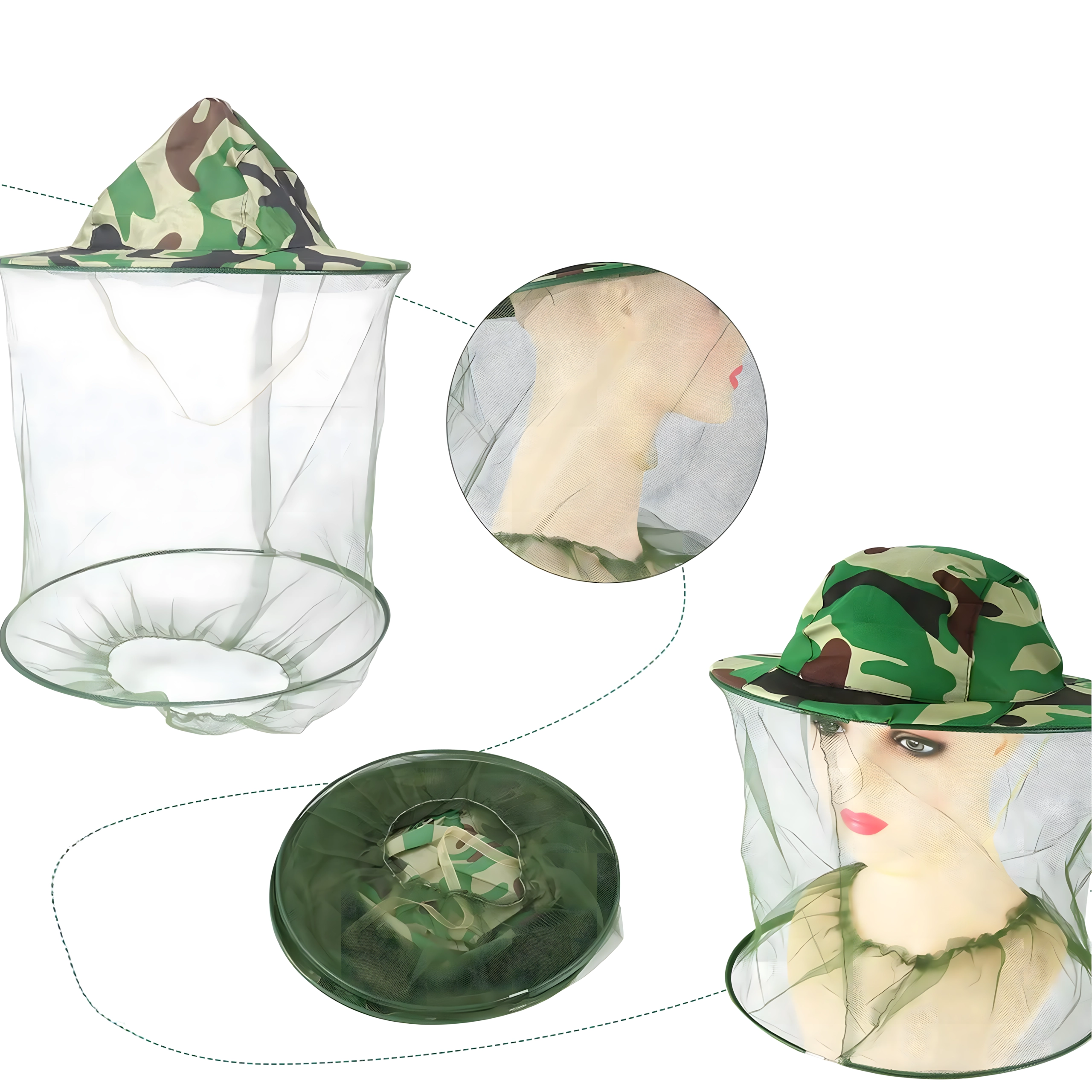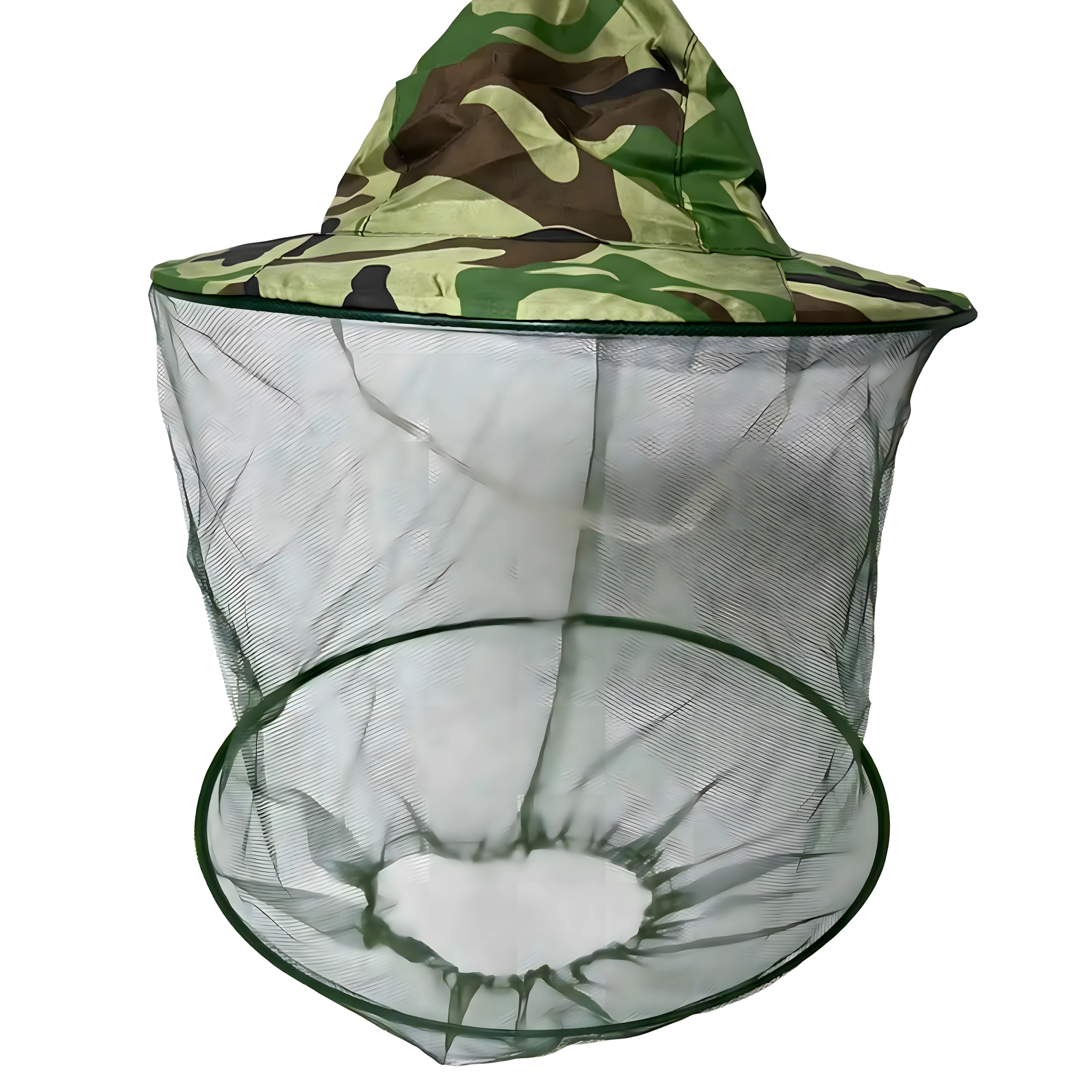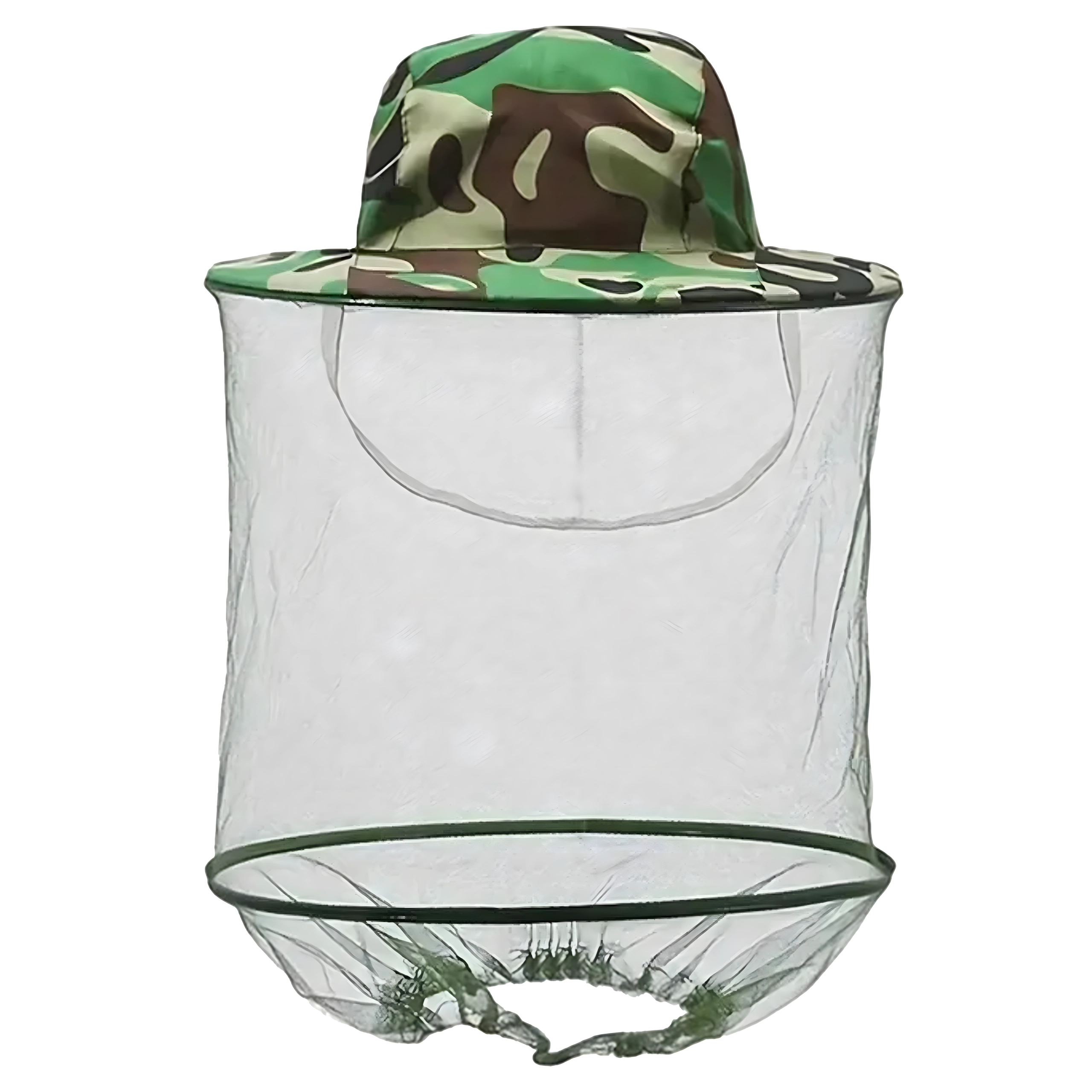 Лека и дишаща шапка с мрежа в камуфлажен десен, която осигурява надеждна защита от комари, пчели и други насекоми. Широката периферия държи мрежата далеч от лицето, а еластичният кант под врата гарантира плътно уплътнение. Идеална за риболов, гората, градината и туризъм.