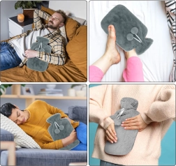 Практичният калъф с декоративни помпони осигурява по-добра изолация, чистота и комфорт при контакт с тялото. Текстурираната гумена бутилка отвътре разпределя топлината равномерно и намалява риска от прегряване на отделни места. Термофорът е отличен за домашен релакс, при менструални болки, мускулни напрежения и за затопляне в студено време.
