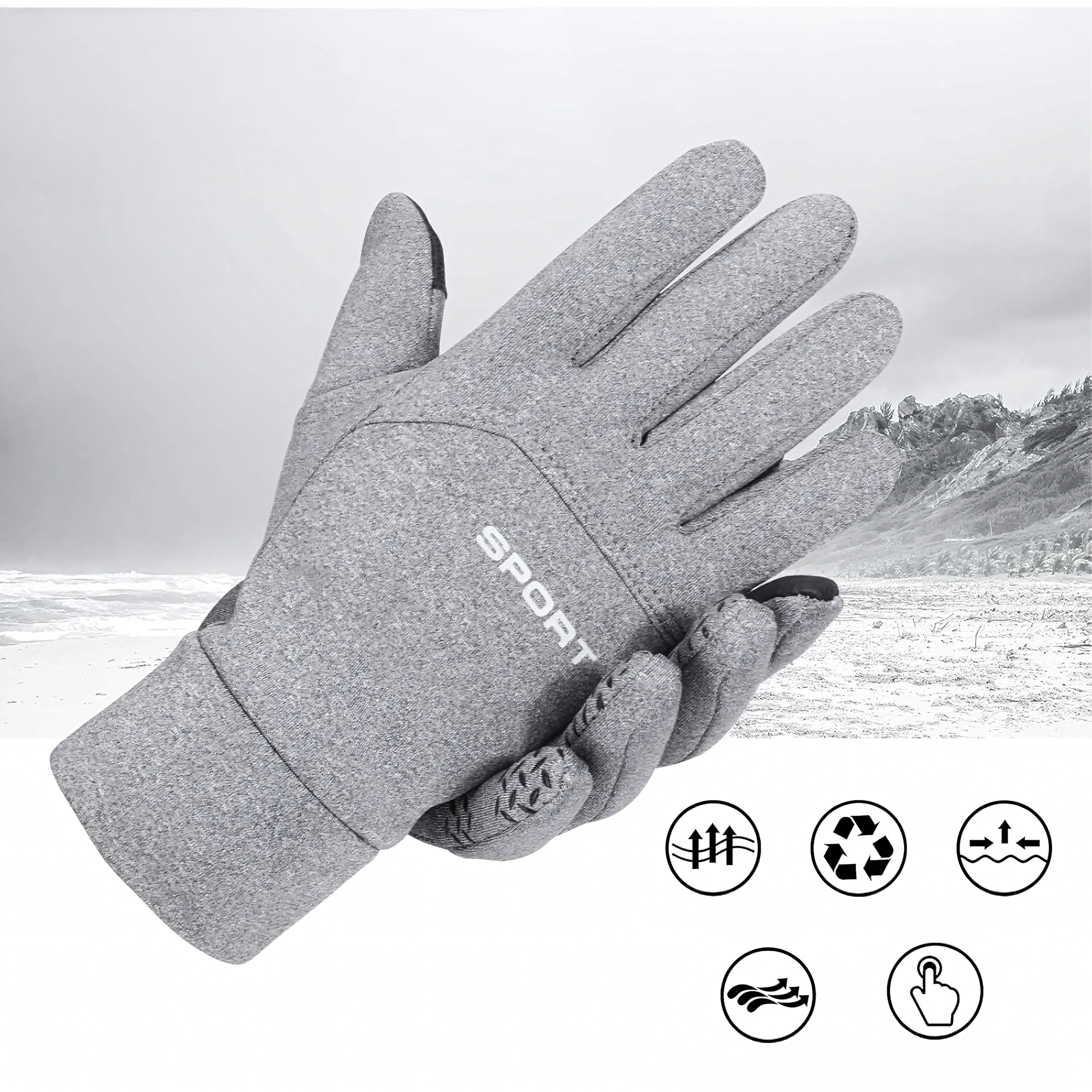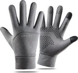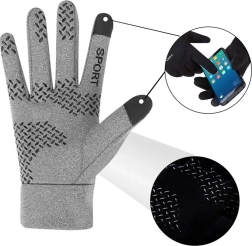 Универсални зимни ръкавици за всекидневно носене и спорт. Благодарение на тъч панелите на палеца и показалеца управлявате телефона без сваляне, противоплъзгащата длан осигурява сигурен захват, а топлата флийс подплата държи ръцете на топло. Ръкавиците са ветроустойчиви и водоотблъскващи, идеални за бягане, колоездене и разходки.