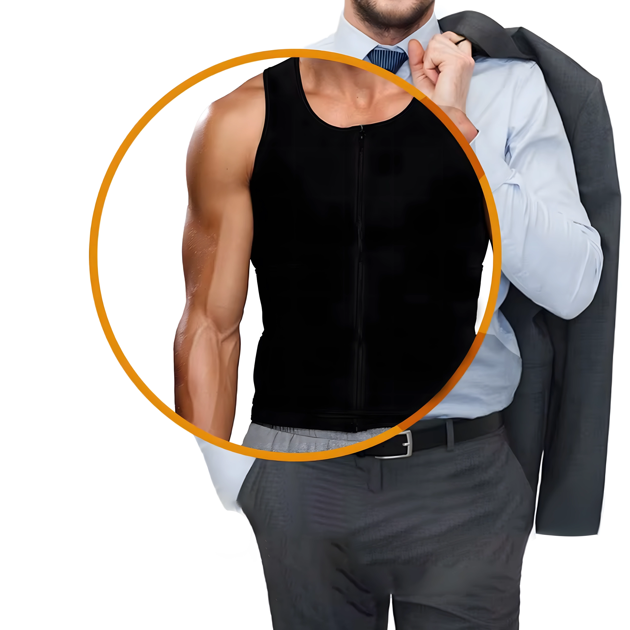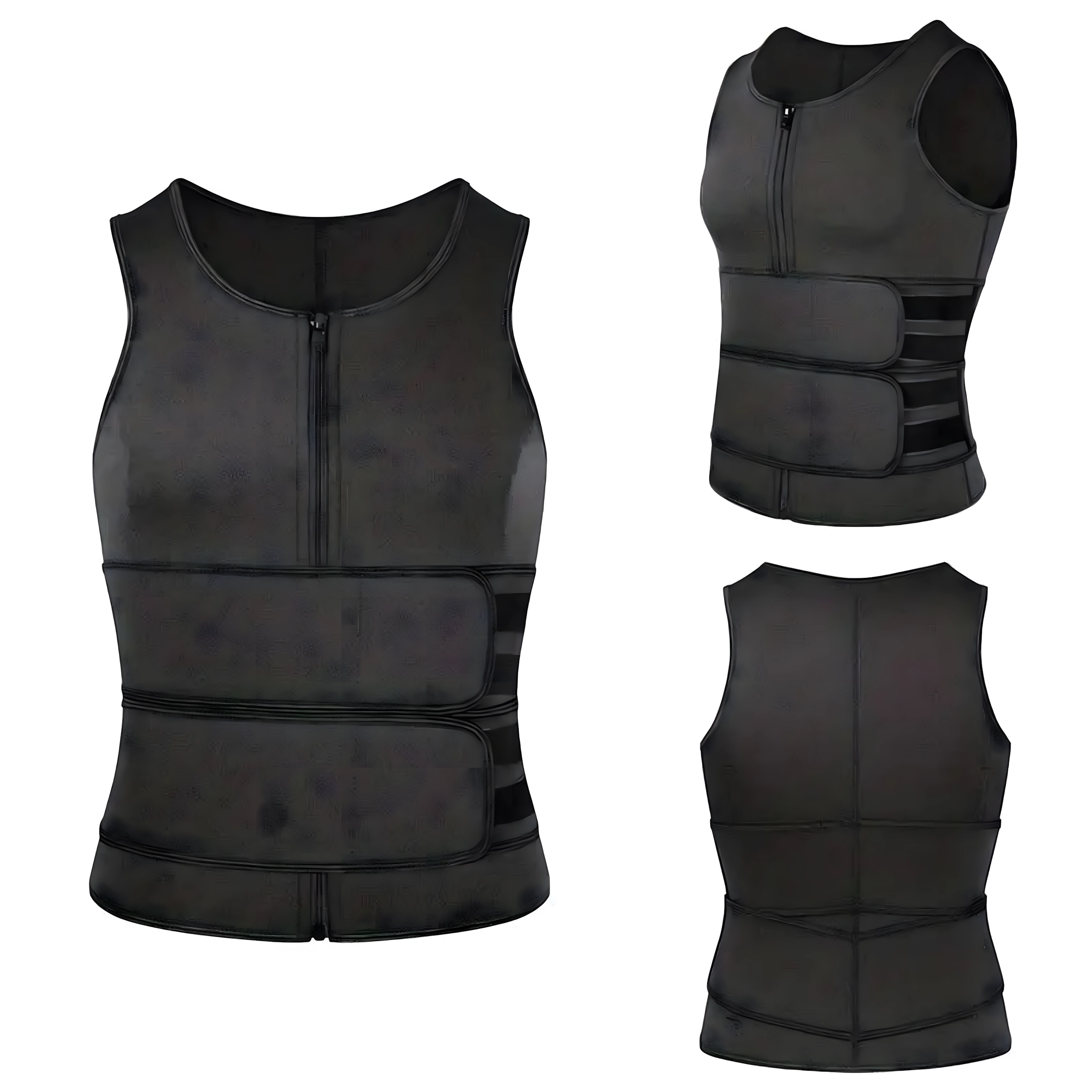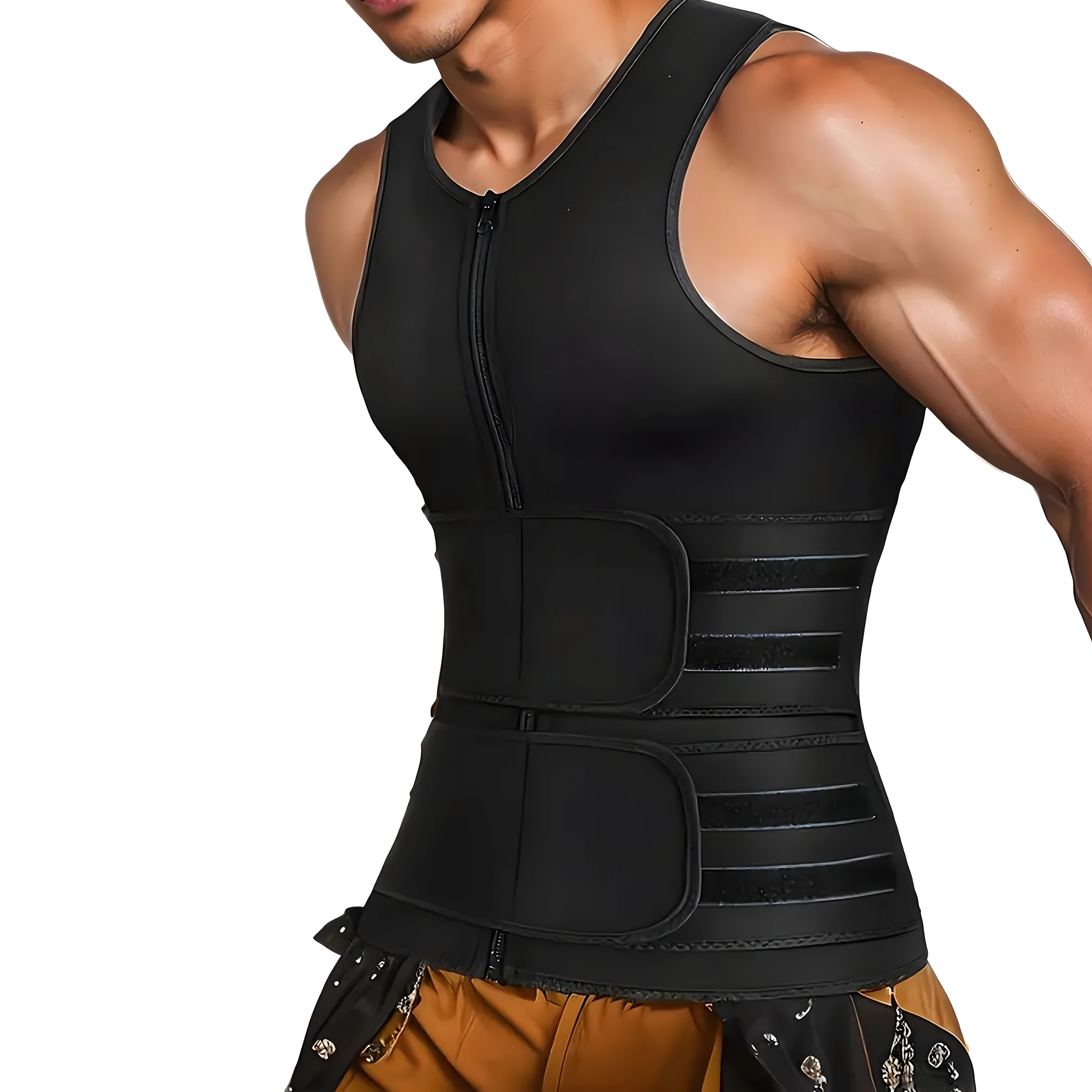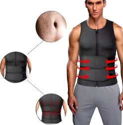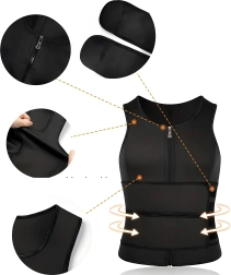 Този мъжки компресионен сауна елек от висококачествен неопрен повишава температурата в областта на торса, като по този начин стимулира изпотяването и по-ефективното изгаряне на калории. Едновременно стабилизира центъра на тялото, подобрява стойката и намалява умората в гърба при силови тренировки, бягане и кардио. Предният цип и широките регулируеми колани позволяват бързо обличане и прецизно пристягане според нуждите.