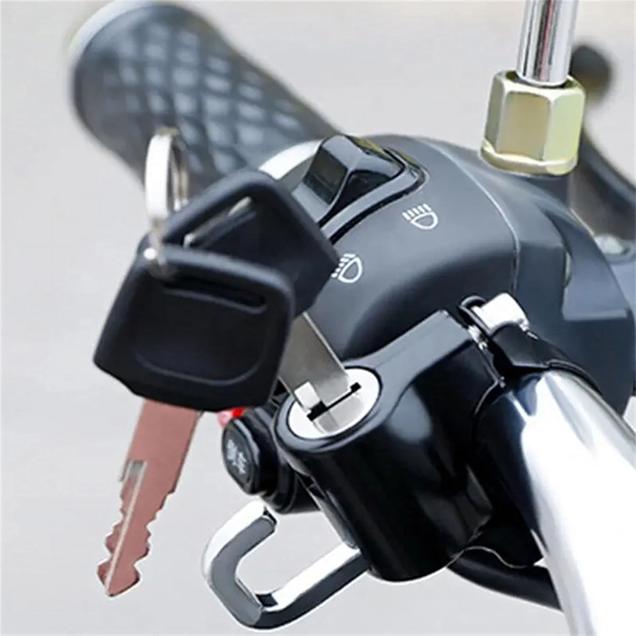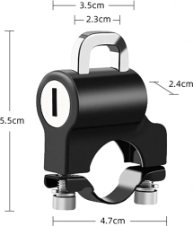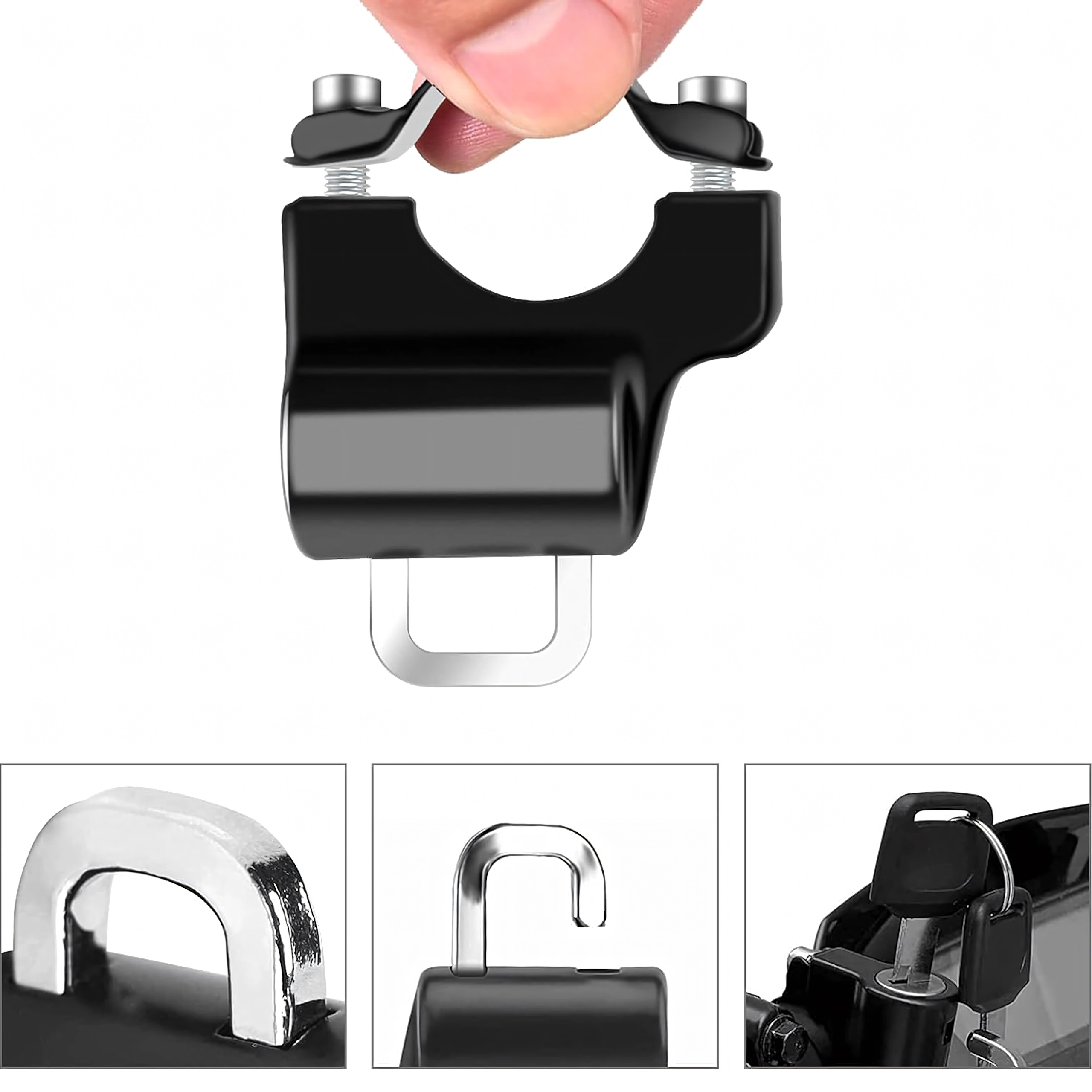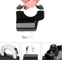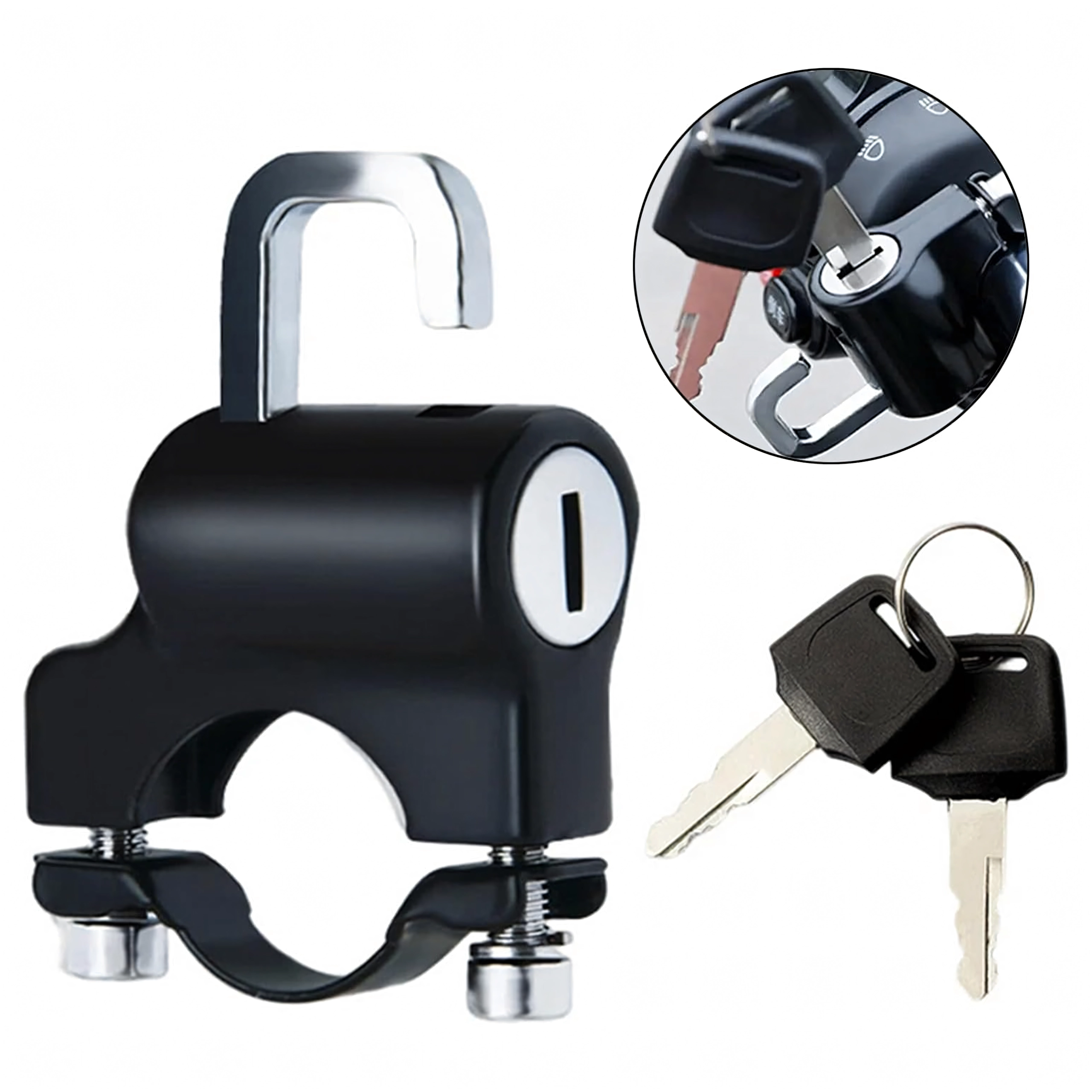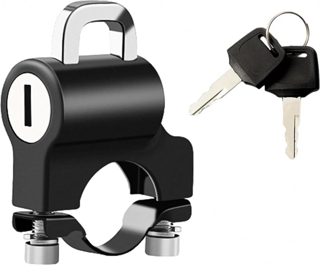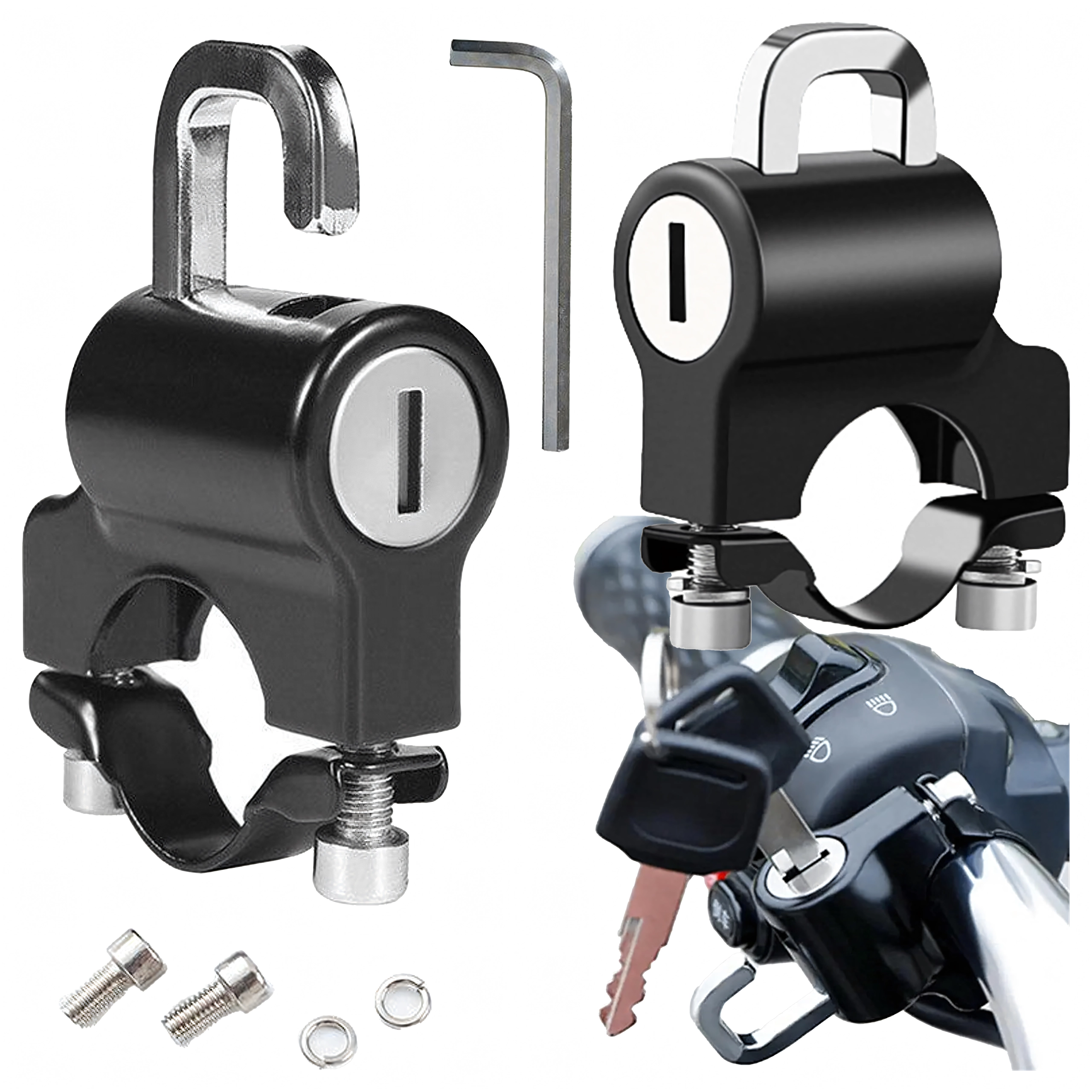 Практично и сигурно решение да оставите каската при машината без притеснения. Катинарът със скоба се монтира директно на кормилото и с помощта на ключ заключва халката или презрамката на каската. Компактните размери не пречат на управлението, а здравата метална конструкция устоява на атмосферни влияния и ежедневна употреба.
