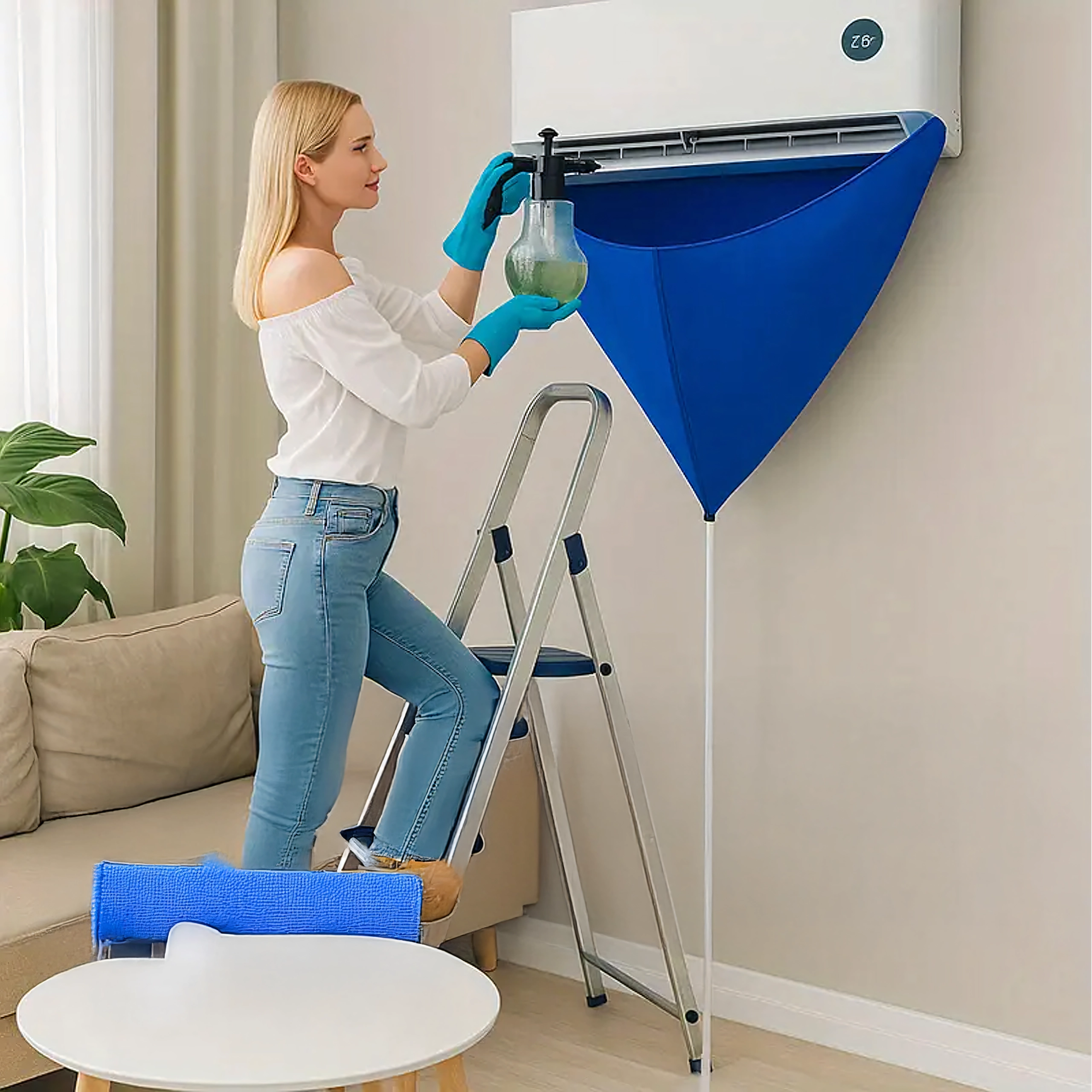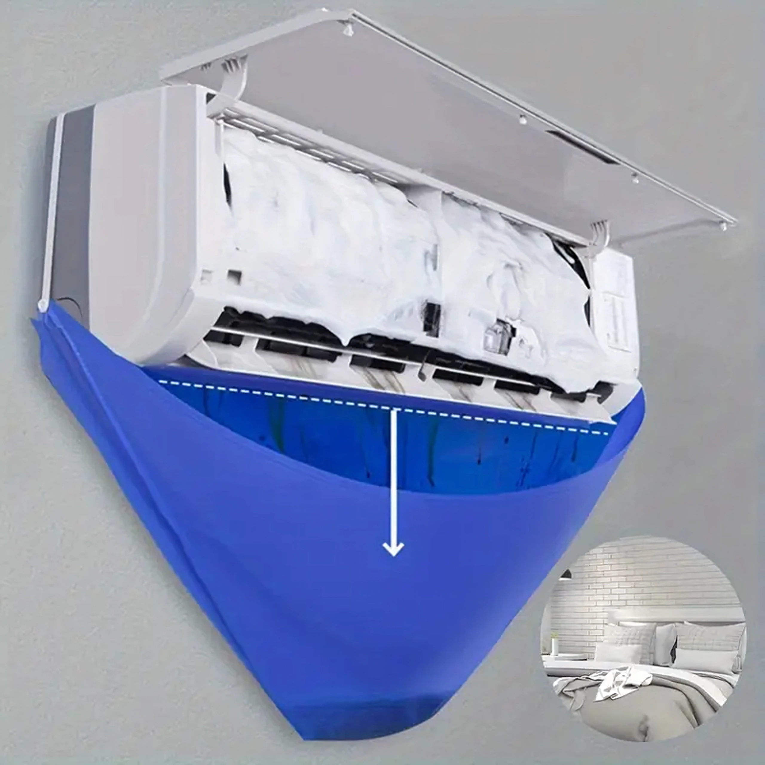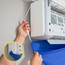 Практичен, водоустойчив сак за почистване и дезинфекция на климатик предпазва стени и подове от замърсяване. Благодарение на 2 м отводнителен маркуч и еластично пристягане осигурява удобно, плътно и безопасно почистване у дома, в офиса и в сервиза.
